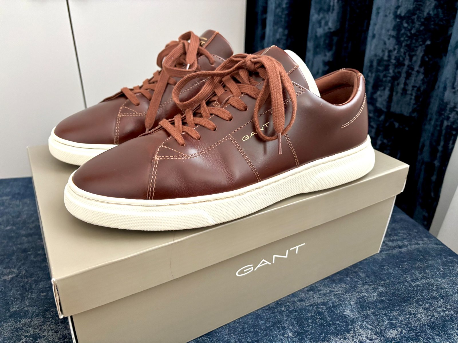 Predám nové pánske tenisky GANT JOREE COGNAC veľkosť 42 z hladkej hovädzej kože prémiovej kvality. Minimalistický vzhľad brandu umiestnený na bočnej strane pod šnurovaním a na jazyku topánky korešponduje s ležérne elegantným, nadčasovým dizajnom obuvi. Na dotyk príjemne mäkké, ale aj mimoriadne odolné a trvanlivé materiálové zloženie povrchovej časti dopĺňa priedušná textilná podšívka spolu s dokonale prispôsobivou koženou stielkou a extrémne ľahkou podrážkou z kvalitného syntetického materiálu. Vysoko komfortný typ obuvi, ktorý sa stane veľmi obľúbenou súčasťou Vašich každodenných outfitov.