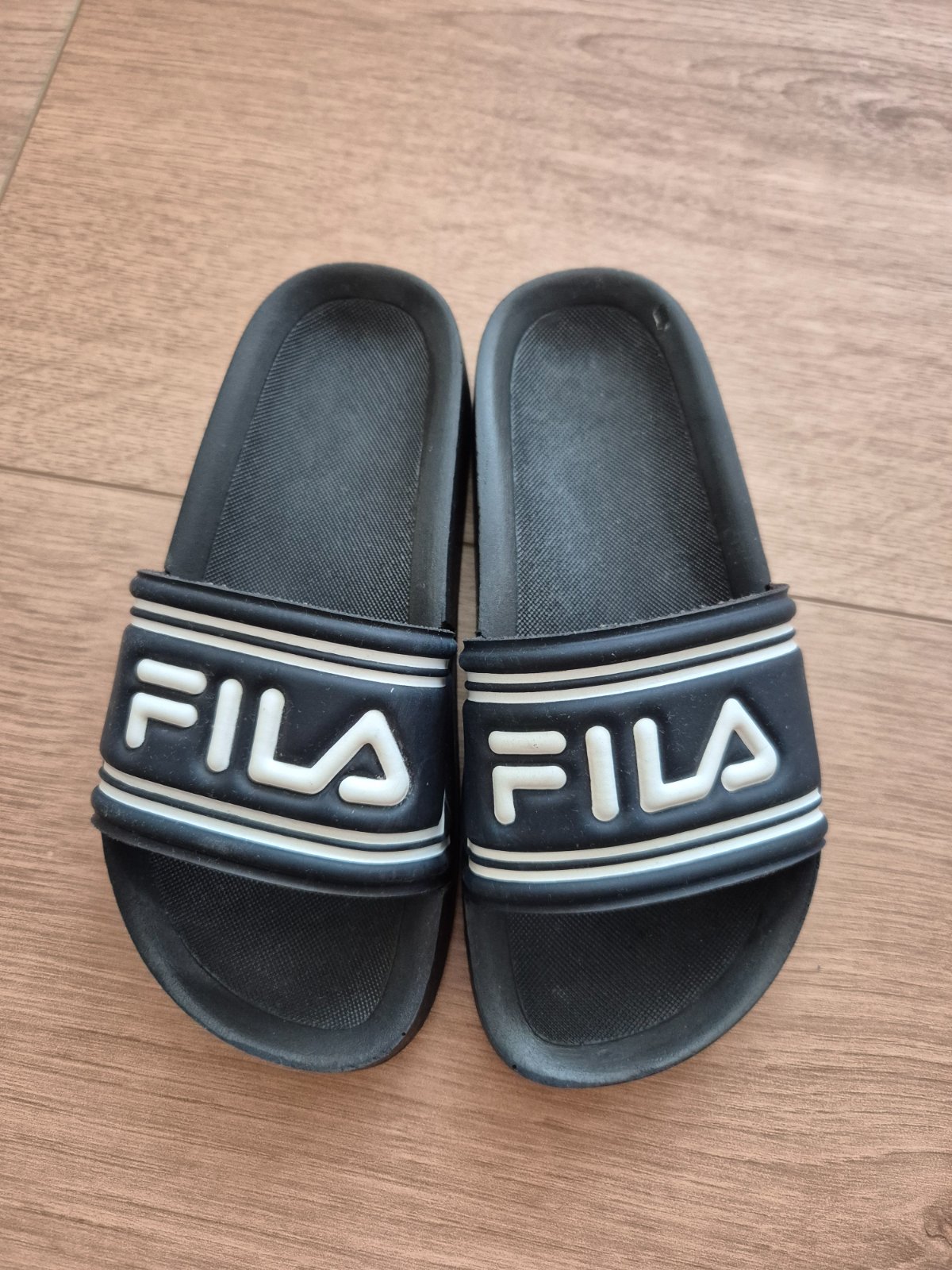 Šľapky Fila, pekný nosený stav. Veľkosť 31, ale v pohode už aj ako číslo 30 s malou rezervou. Vhodné pre chlapca aj dievča, dcéra ich nosila doma ako papuče cca 2 mesiace a už jej boli malé. Materi...