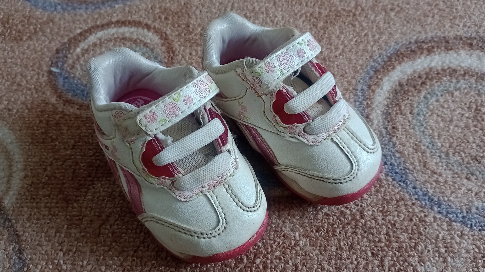 Predám tenisky na prvé krôčky, v dobrom stave, akurát sú už trošku zažltnuté, hlavne podrážka, no myslím, že na prvé kroky postačia, darujem k nim papučky, ktoré sú asi o číslo väčšie. Všetko nafotené.