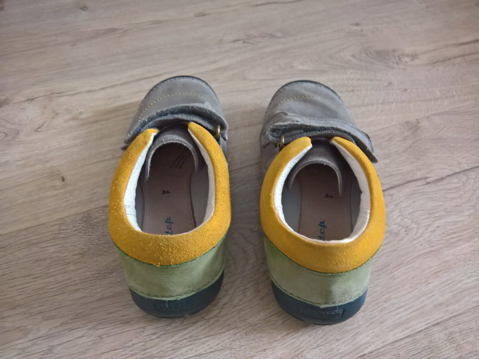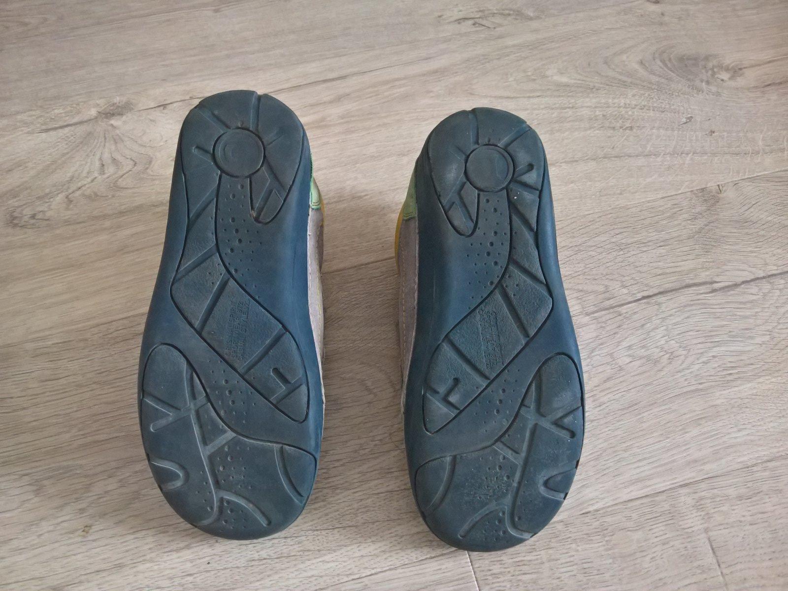 Lahučké, ohybné topánky béžovo-hnedej farby vo výbornom stave. Dĺžka celej stielky po tú vyhnnutú časť na pätu je 23cm...šírka v najširšej časti stielky je 7,7cm.