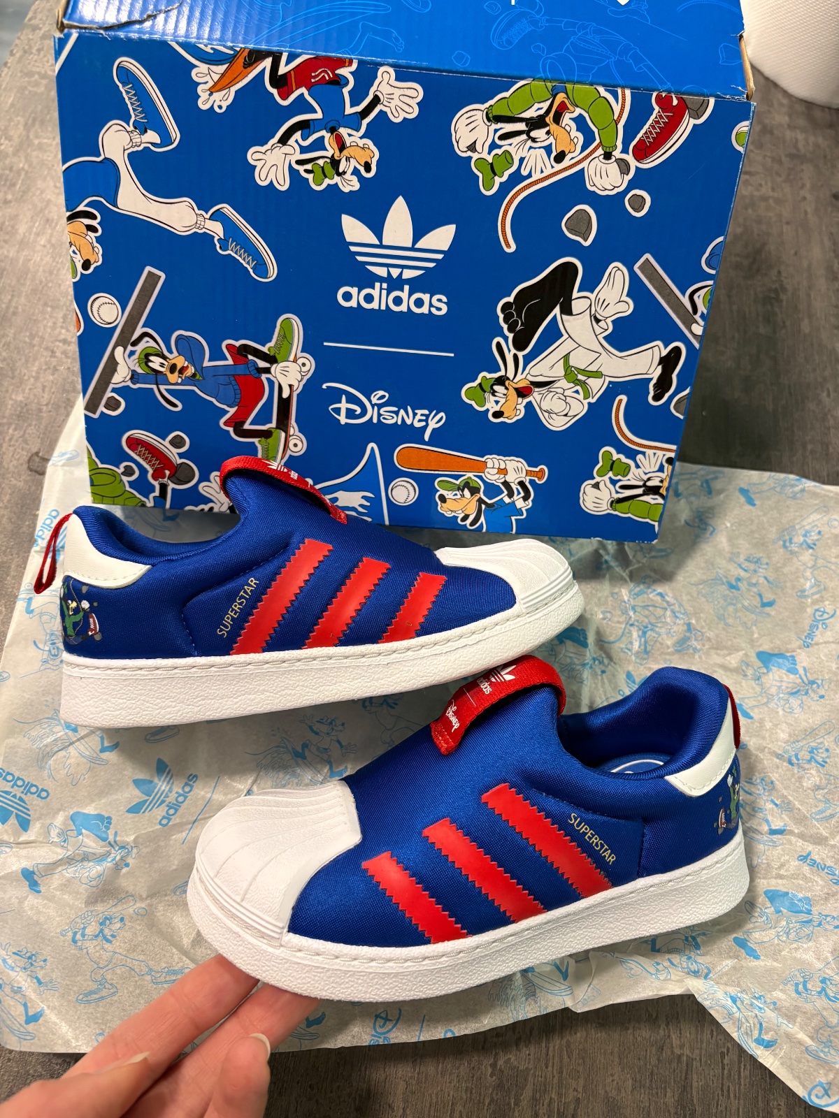 Adids detske botasky z kolekcie Superstar Disney, vo velkosti 26,vnutorna dlzka je 16cm, komplet v krabici, ako nove