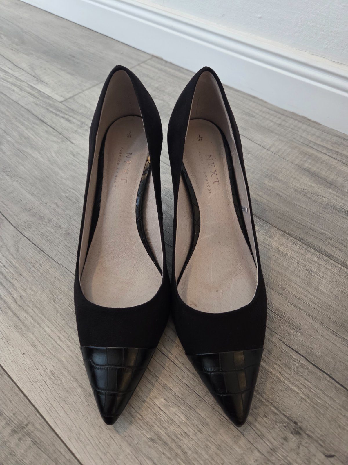 Elegantné lodičky z dratej kože a koženými špičkami.
