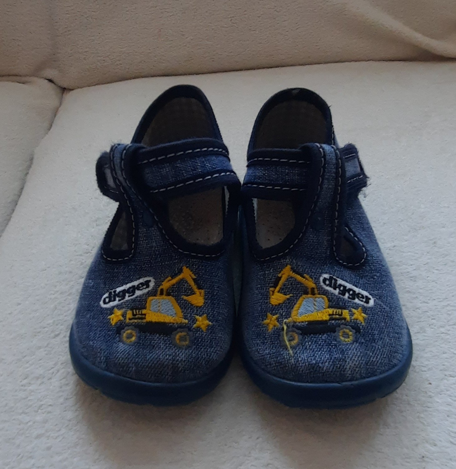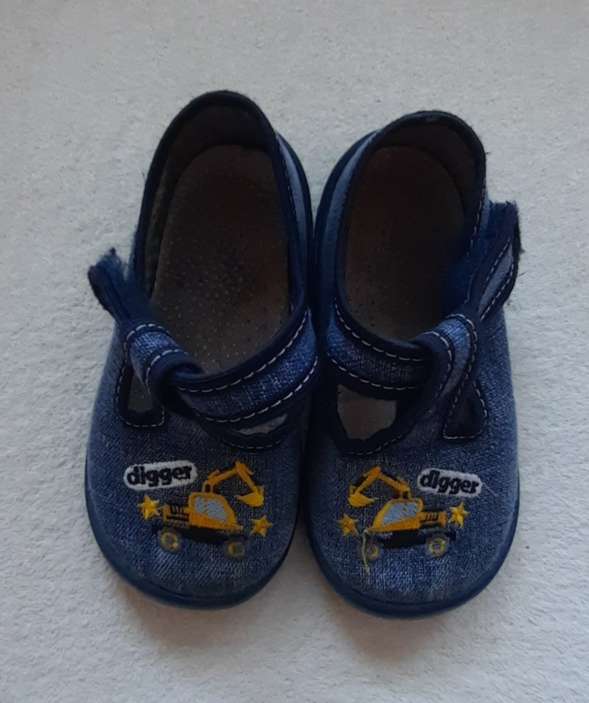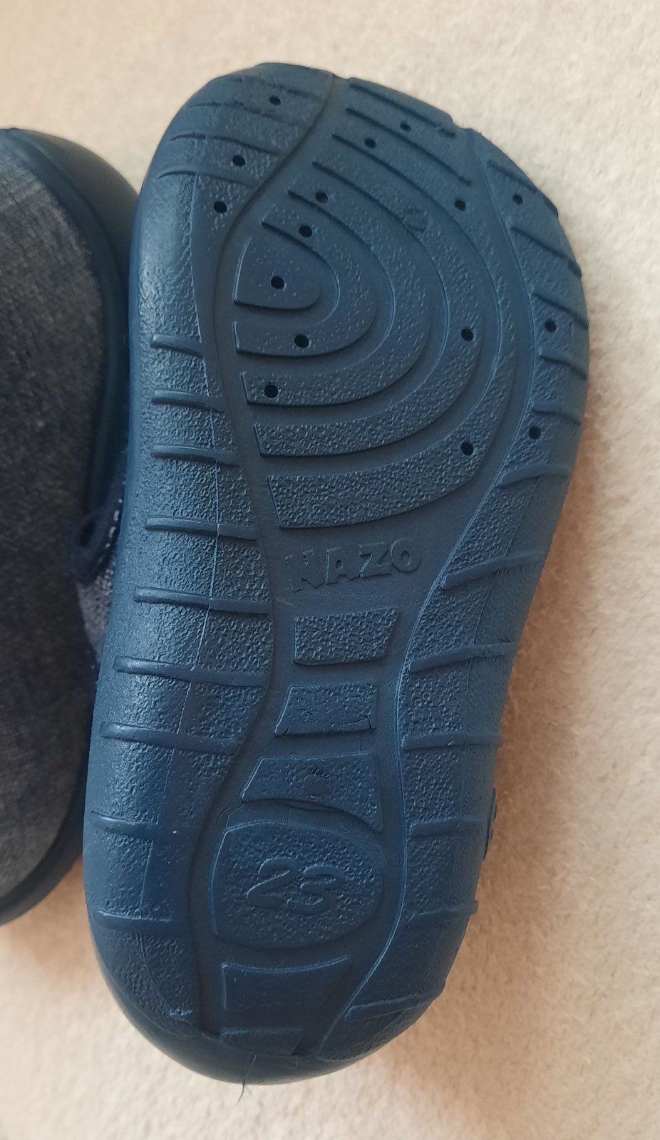 Predam 1 par detskych papuciek znacky Nazo velkosti 23. Su v zelenej farbe s motivom motorkara. Sú mäkké, ľahké a veľmi pevne, vhodné pre najmenšie deti, ktoré sa učia chodiť. Majú ortopedickú stie...