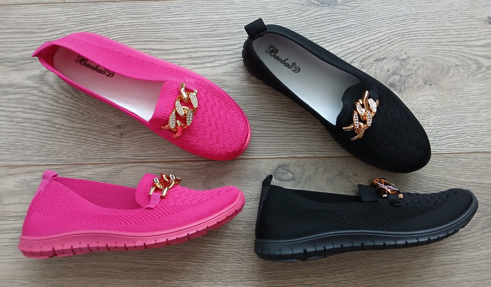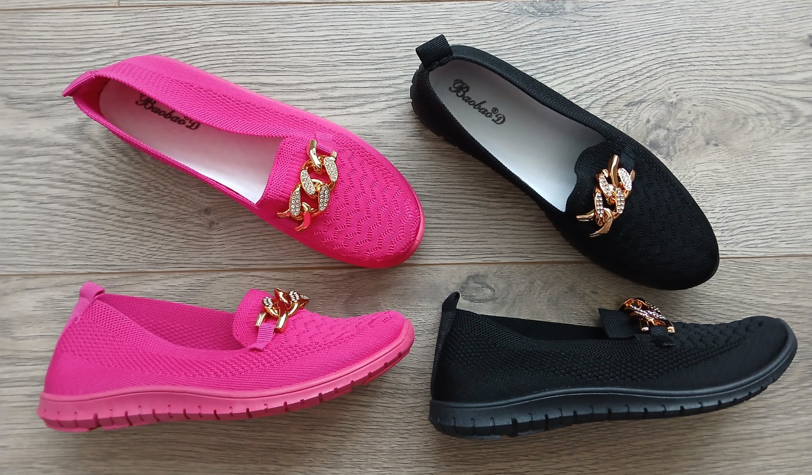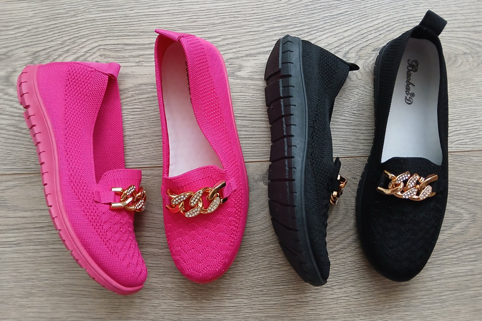 Ruzove a cierne mokasiny