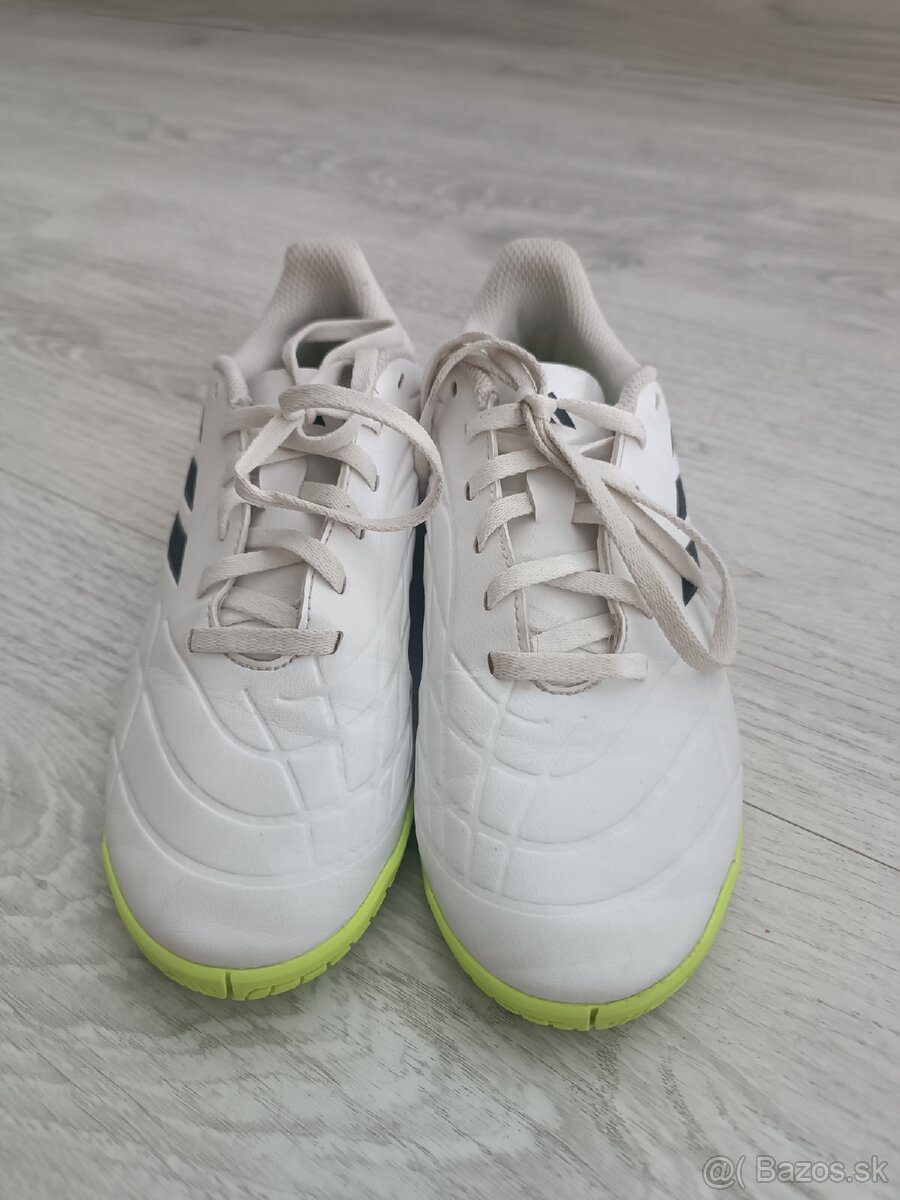 Chlapčenské halovky Adidas. Veľkosť FR 34 , vnútorná dĺžka 21,5cm. Nízky model na šnurovanie, gumená podrážka, málo používané.