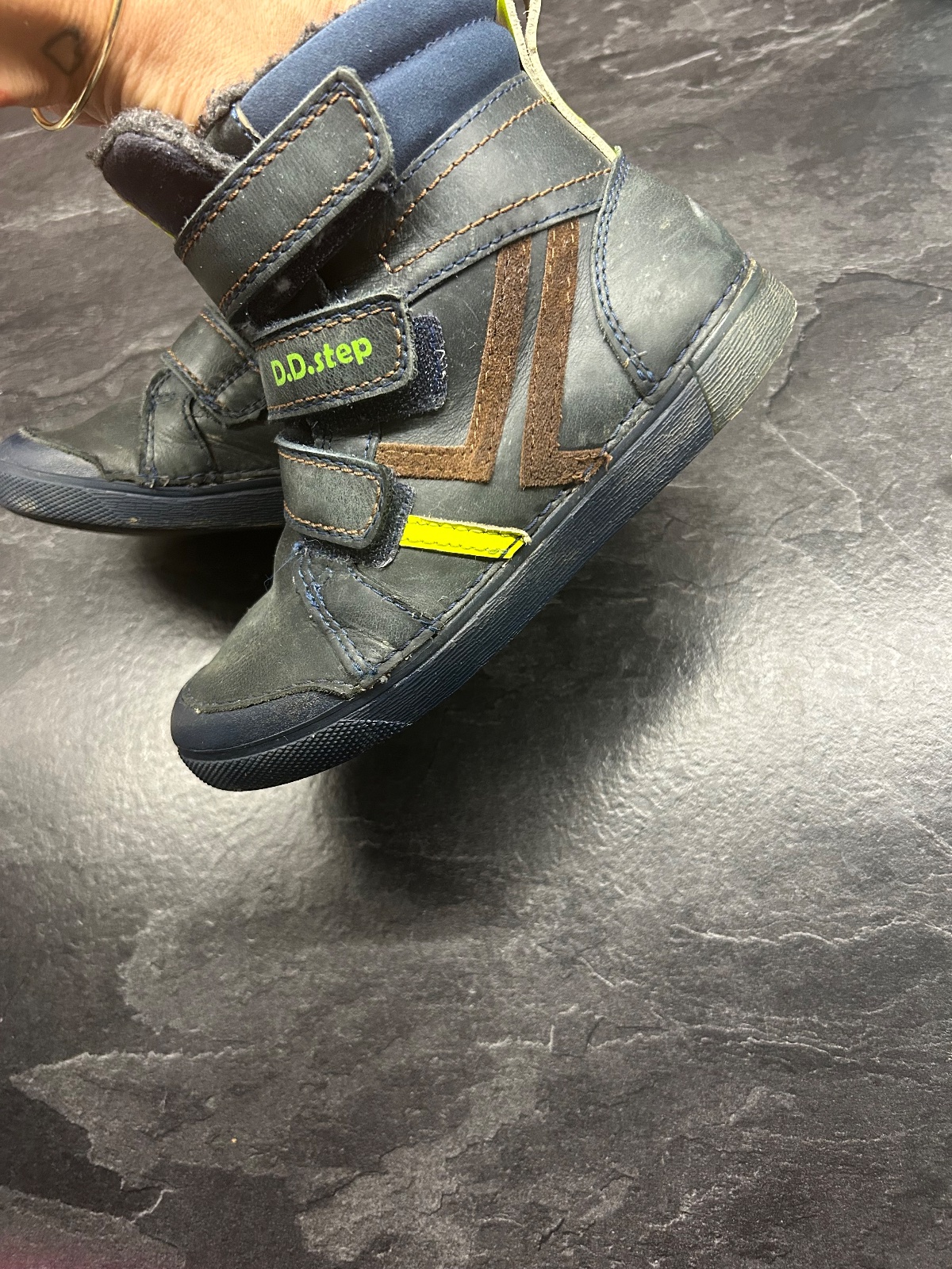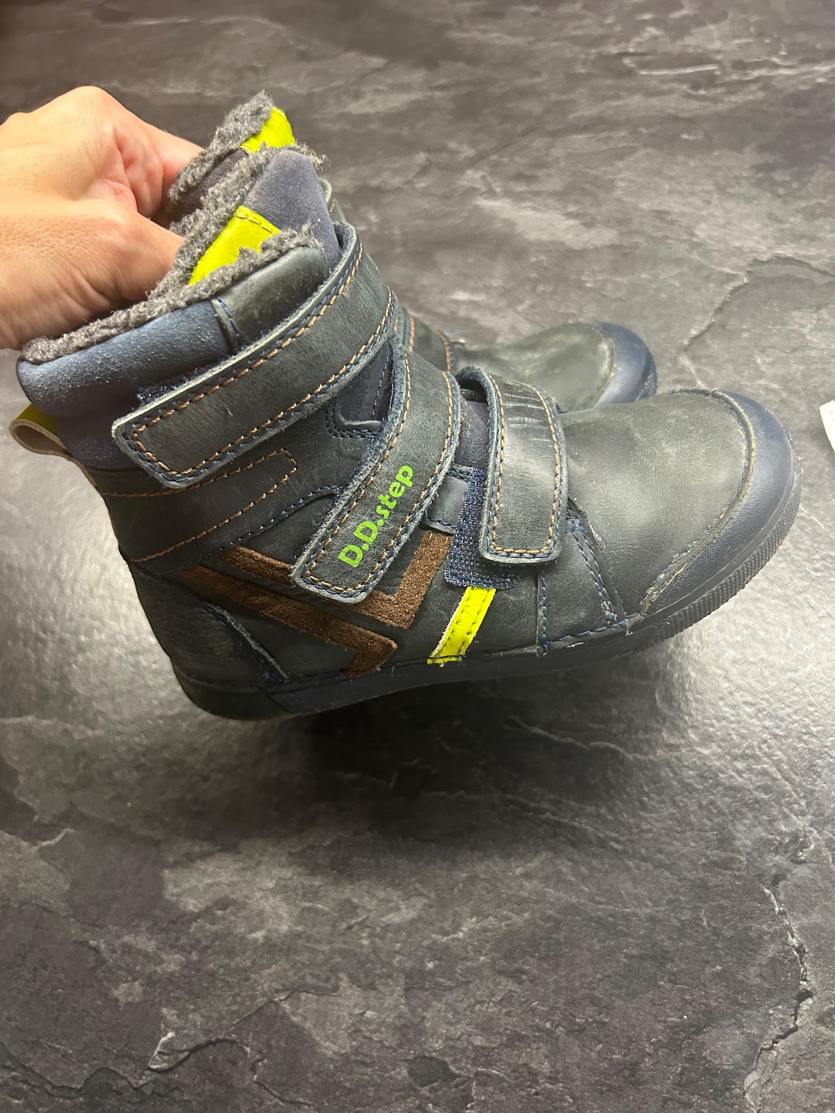 Predám zimnú obuv D.D.step veľkosť 30 s vnútornou dĺžkou 19cm. V zachovalom nosením stále, len tmavomodrá farba je vpredu trošku vyblednuta, ošúchaná od oteplovakov. Cena 15eur s poštovným