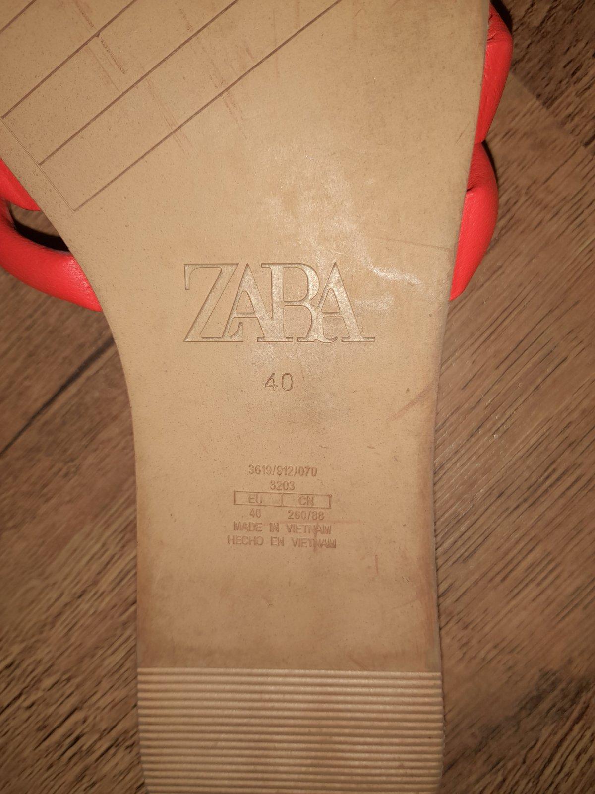Predám krásne šľapky Zara, nosené,v super stave. Veľkosť písaná 40,sedia na 39,vhodné na užšiu nohu. VD.25,5cm,meraná oranžová časť.