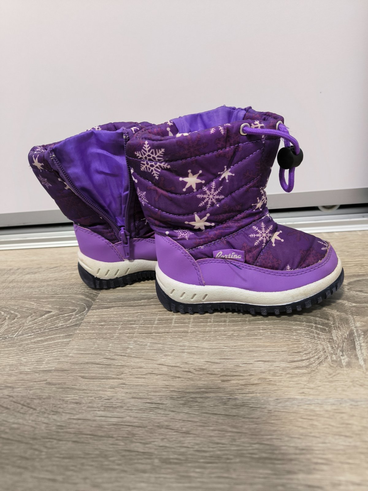 Používané topanočky na zimu. Nepremokavy system na deltex. Okopane, no neuberá na funkčnosti, skôr na donosenie. Vnutorna dlzka 13,5-14 cm