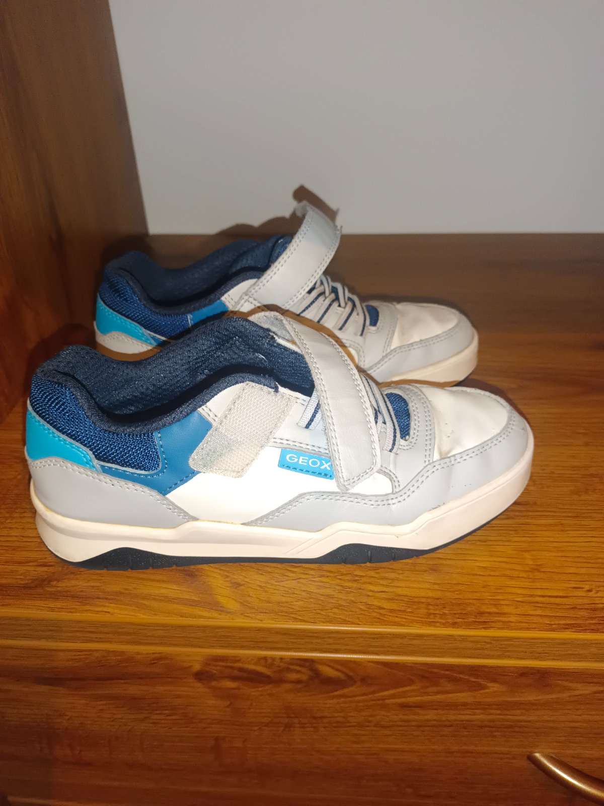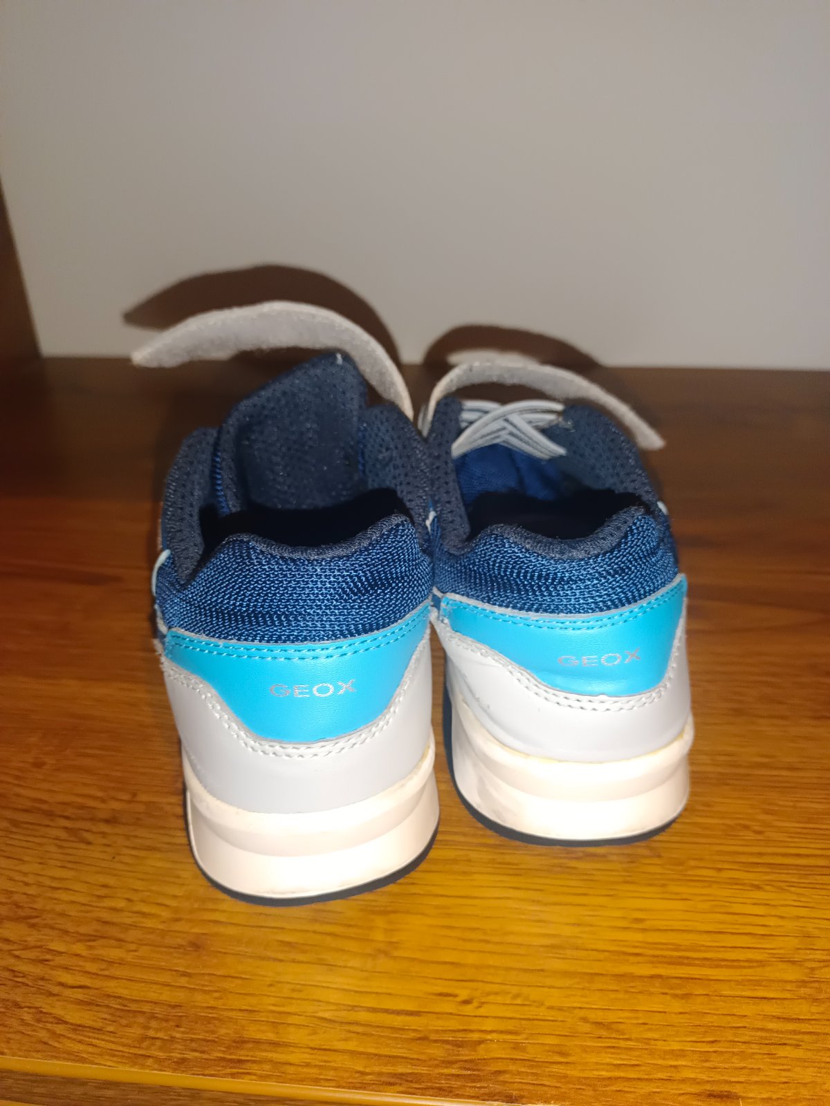 Zachovale Geox tenisky / botasky / topanky. Leskly material, obute mozno 10 x do skoly. Bez odrenin ci prasklin, oni sa tak zvlastne prehnu vzdy tento typ (mali sme uz viackrat), ale pekne ukazu. S...
