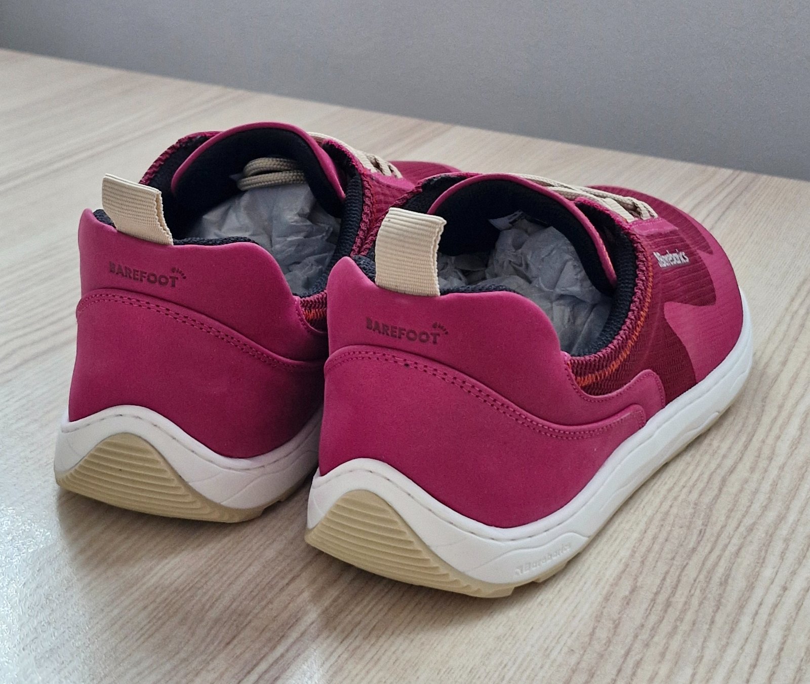 Extrémne ľahké outdoorové barefoot tenisky v tmavoružovej farbe. Vychutnajte si ten pravý komfort pri potulkách lesnými chodníkmi a nestraťte svoj štýl. Barebarics Wanderer sú vyrobené z prémiovej kože a textílie, ktorá zaručí odvetrávanie a priedušnosť. Samozrejmosťou je prešitá podošva pre dlhšiu životnosť a pútko pre jednoduchšie obúvanie.