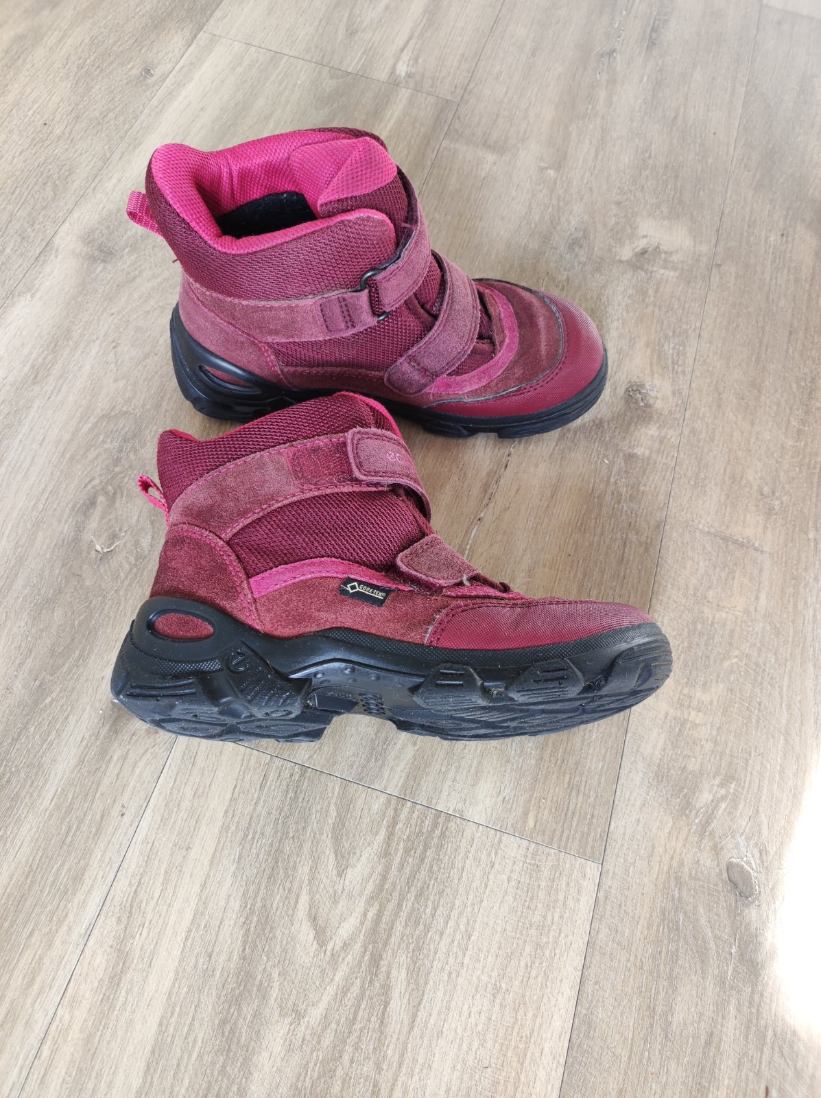 Perfektné nešnurovacie zimné topánky, ktoré máme doma v 3 veľkostiach. Tieto sú už malé (vn. dĺžka 20cm). Goretex drží nohy v suchu. Majú 1 chybu z používania, a to gumičky- presnejšie 1gumička už ...