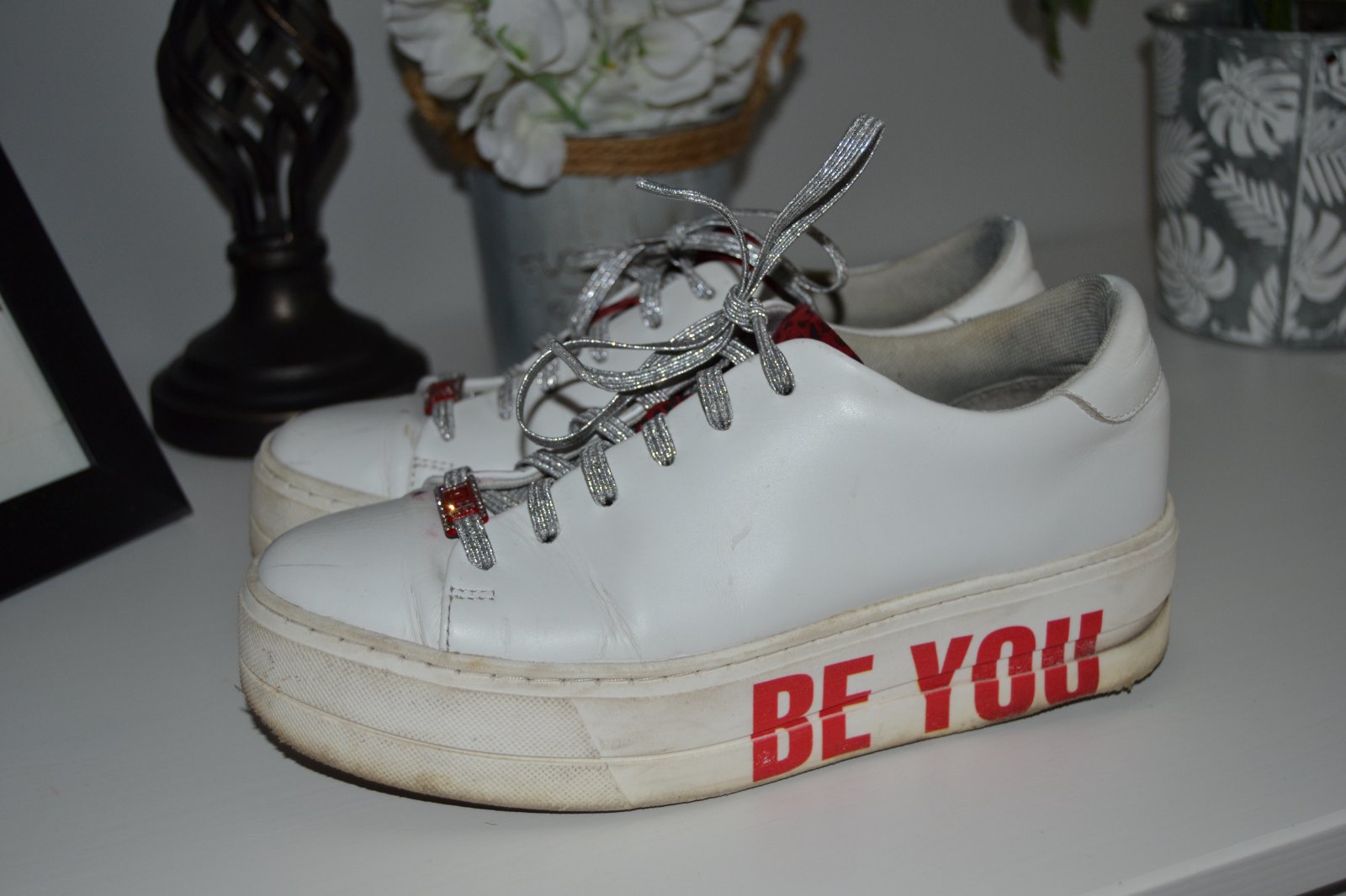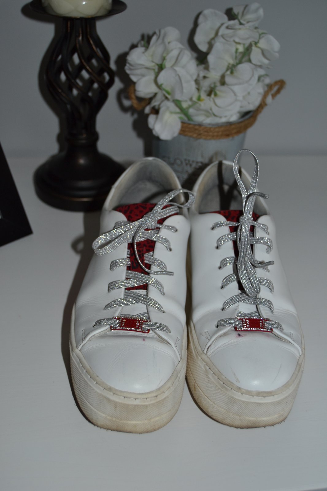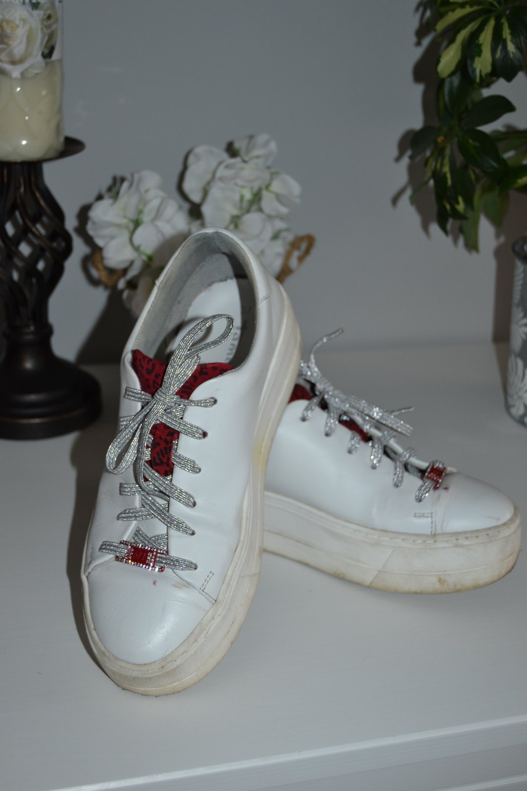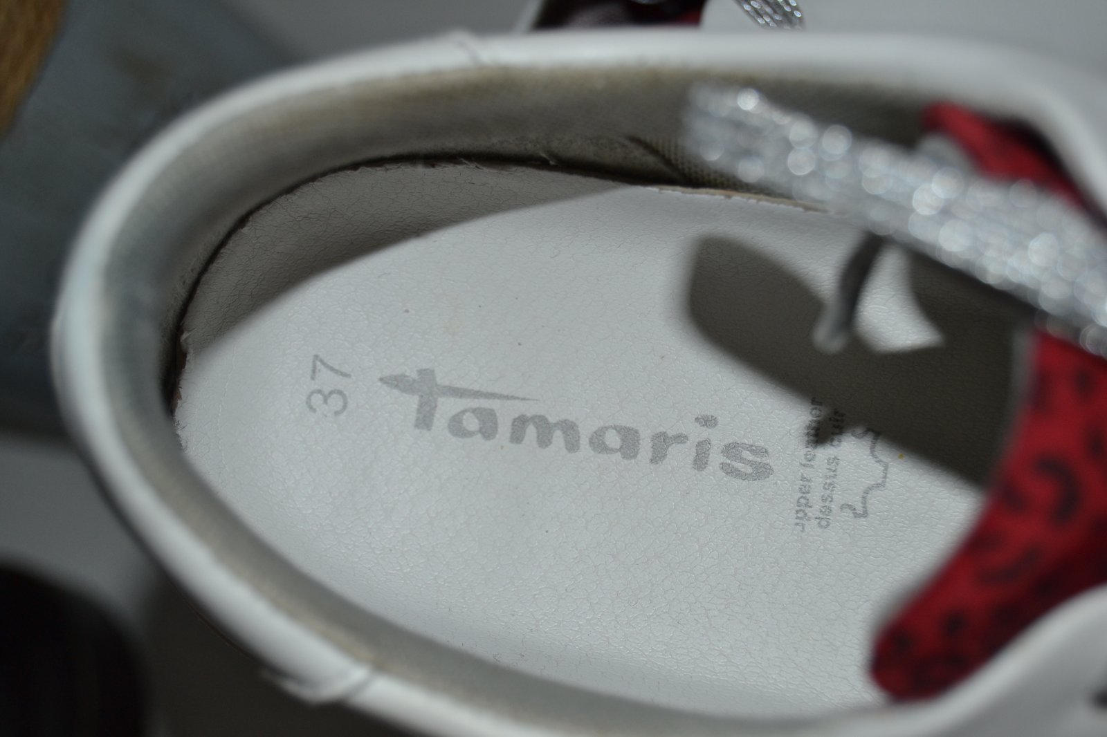 Tamaris Sneaker low tenisky na vyššej platforme, farba bielo červená, materiál koža, veľkosť 37, na šnúrky strieborné, ak je záujem priložím pôvodné biele.