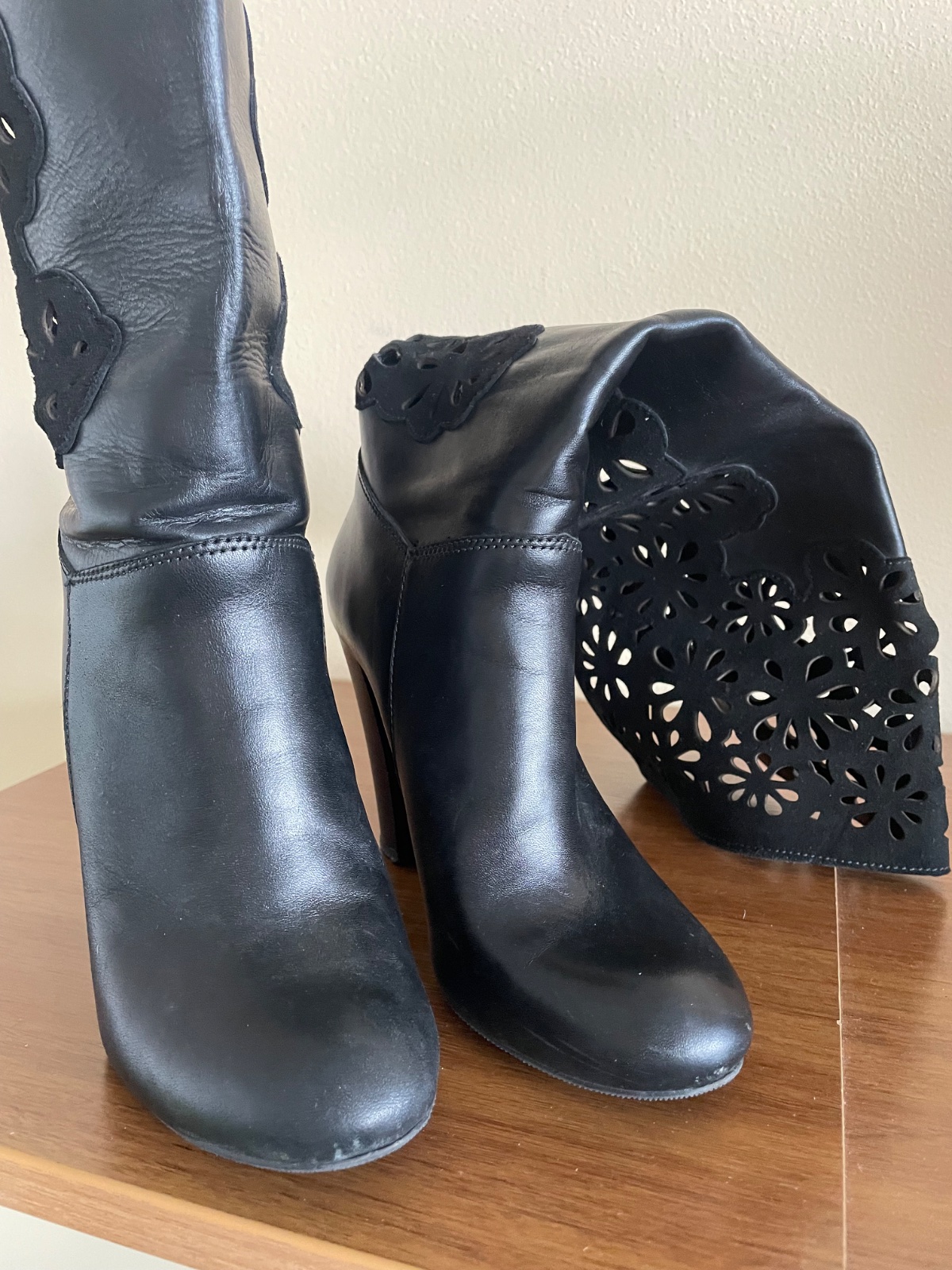 Kožené (zvnútra aj zvonku) čižmy veľkosť 40, výborný stav. Červený opätok meria 8,5 cm. V prípade záujmu poskytnem viac foto a premeriam.