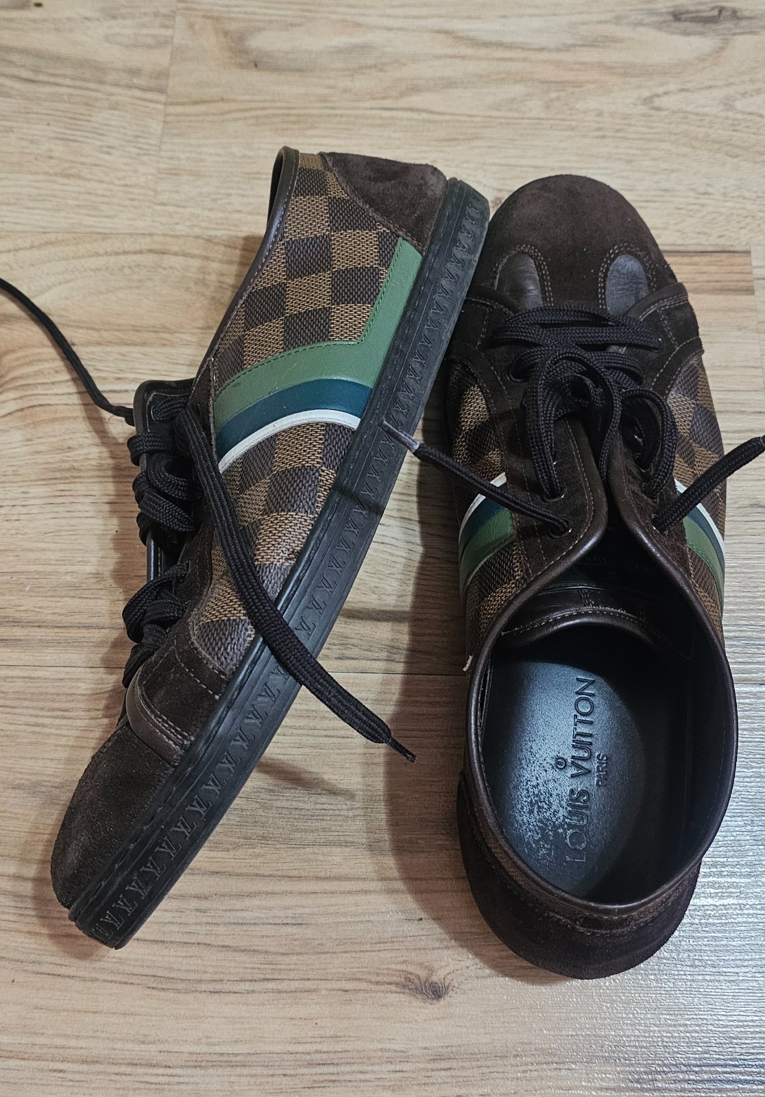Predám pánske tenisky značky Louis Vuitton, model Damier Graphite brown vo velkosti 43. Tenisky boli obuté asi 5x. Stav 9.5/10. Tenisky viem poslať dobierkou ale odovzdať aj osobme Ba + okolie. V prípade otázok rád odpoviem mailom alebo telefonicky. Ak máte záujem aj o iné cool veci kuk na moje ostatné inzeráty ;-)