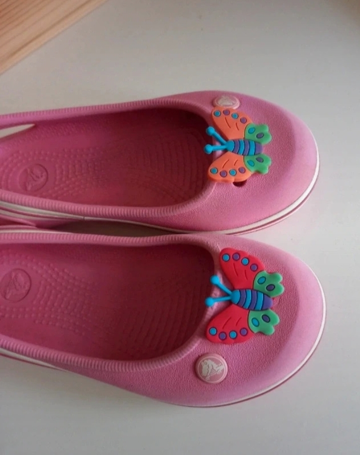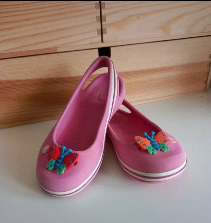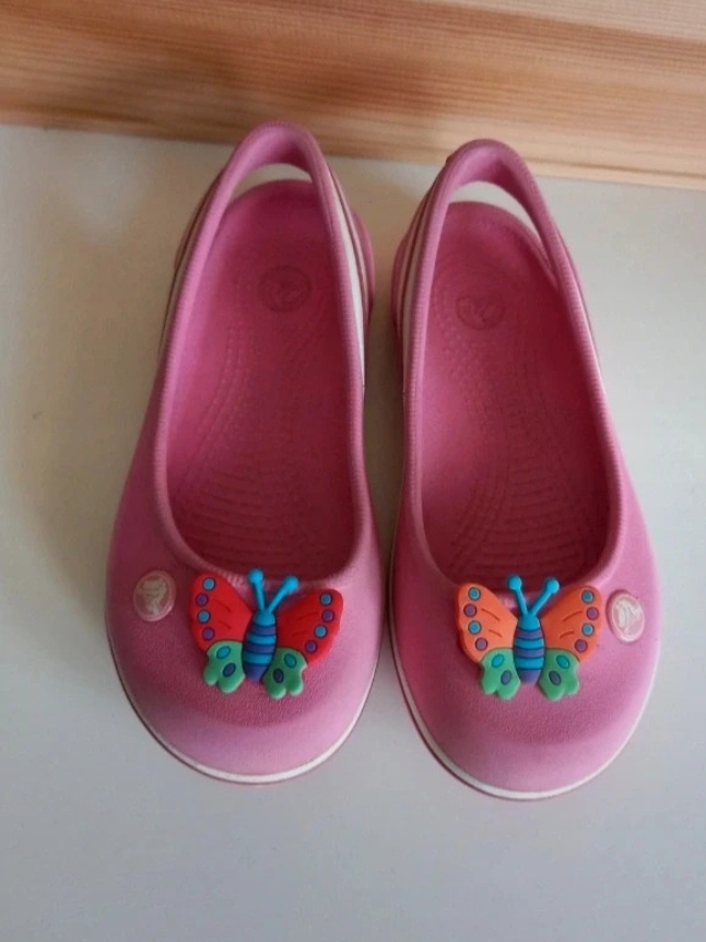 Ľahučké balerínky s otvorenou pätou veľ.10 zodpovedá 27/28 fotené vnútro nadoraz 17cm, #crocs odporúčajú pre 16,6 cm nôžku.vhodné aj do vody, mora a pod. Jemné známky používania na podrážke nafotené.