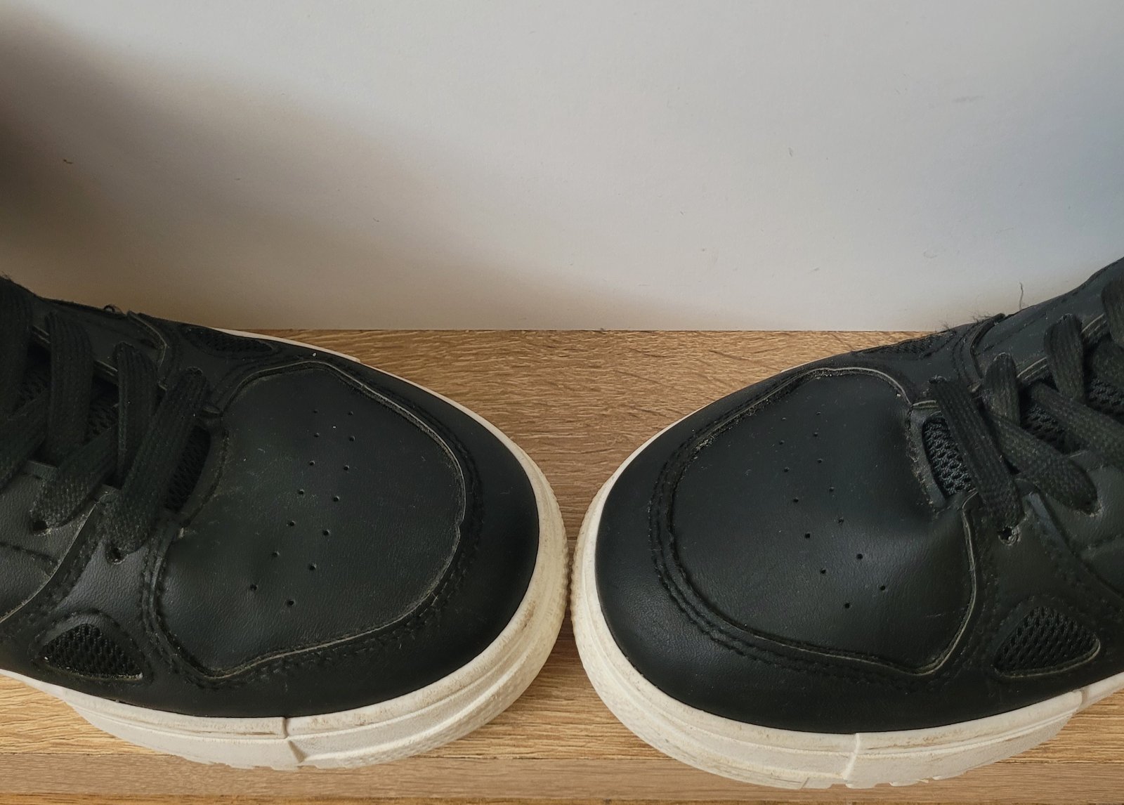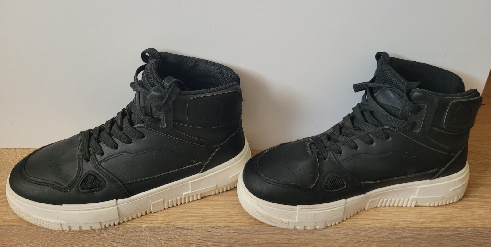 Tenisky v peknom stave po mojej dcére, kombinácia čiernej s lesklou látkou, maju zvnútra jemne oskretie(vid foto),nic hrozne.
