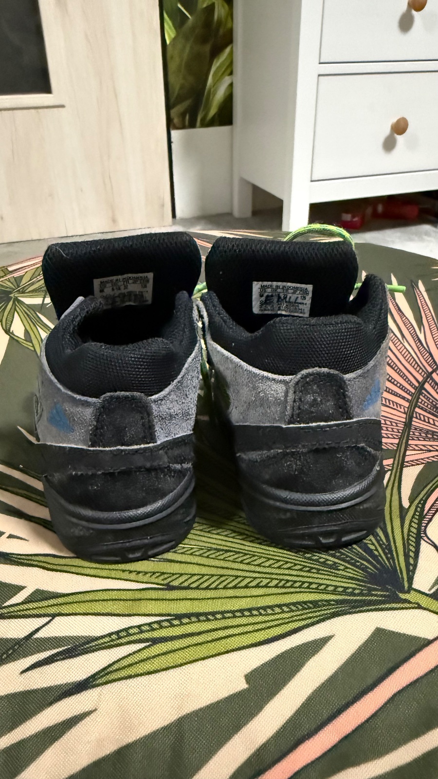 Kožené členkové topánočky značky adidas. Veľkosť UK 5 1/2. Vnútorná dĺžka 14 cm. Vhodné pre nožičku 13,5 cm. Topánočky sme radi nosili.Na ľavej sa trochu odliepa špička. Inak sú v dobrom používanom...