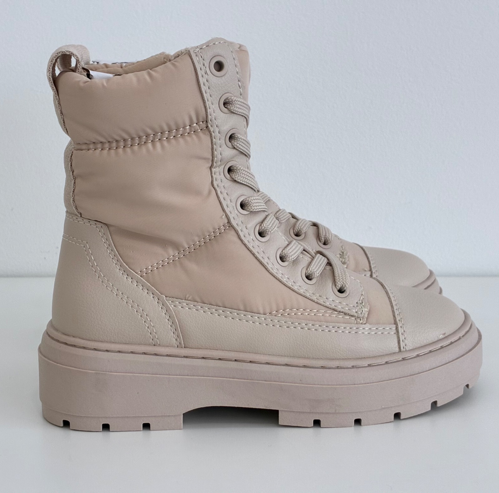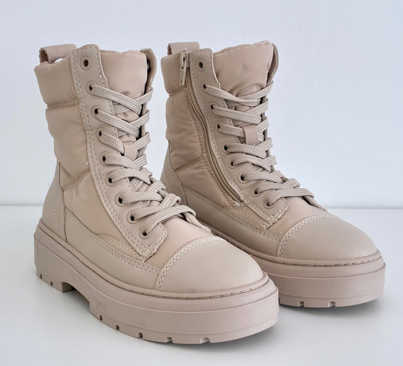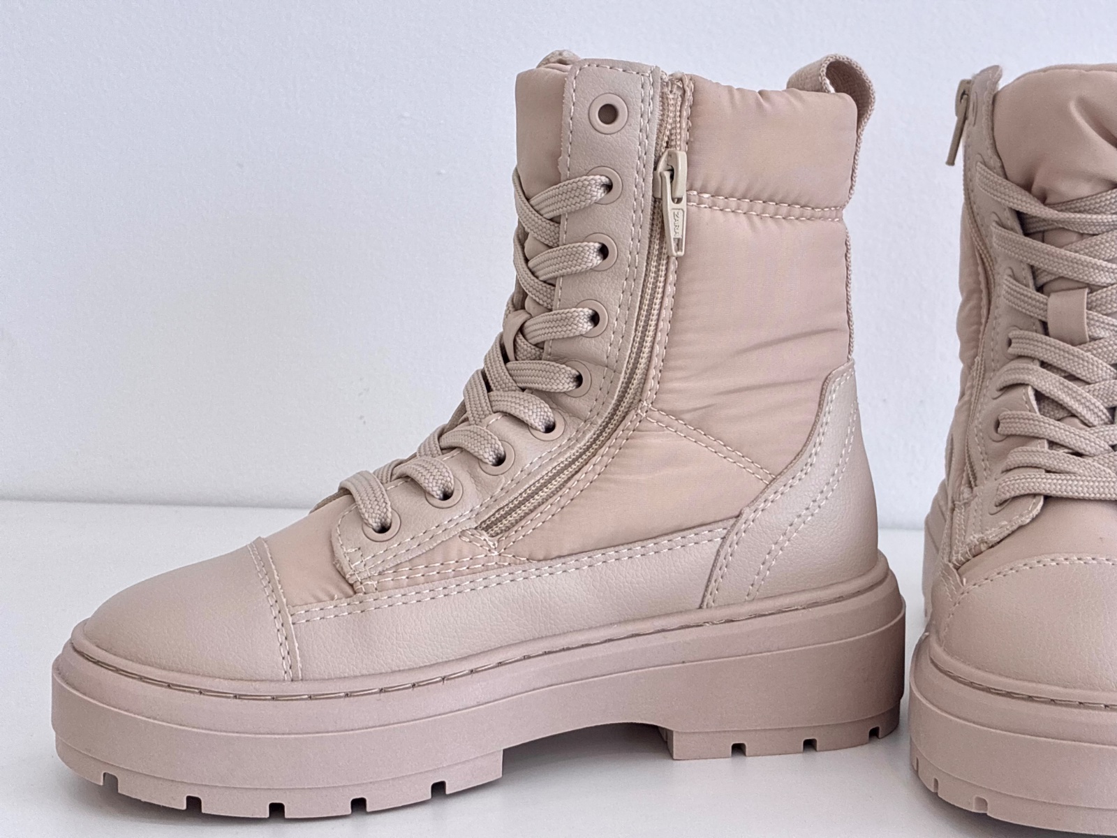 Prešívané zeteplené čižmy na šnurovanie a zips. Nové