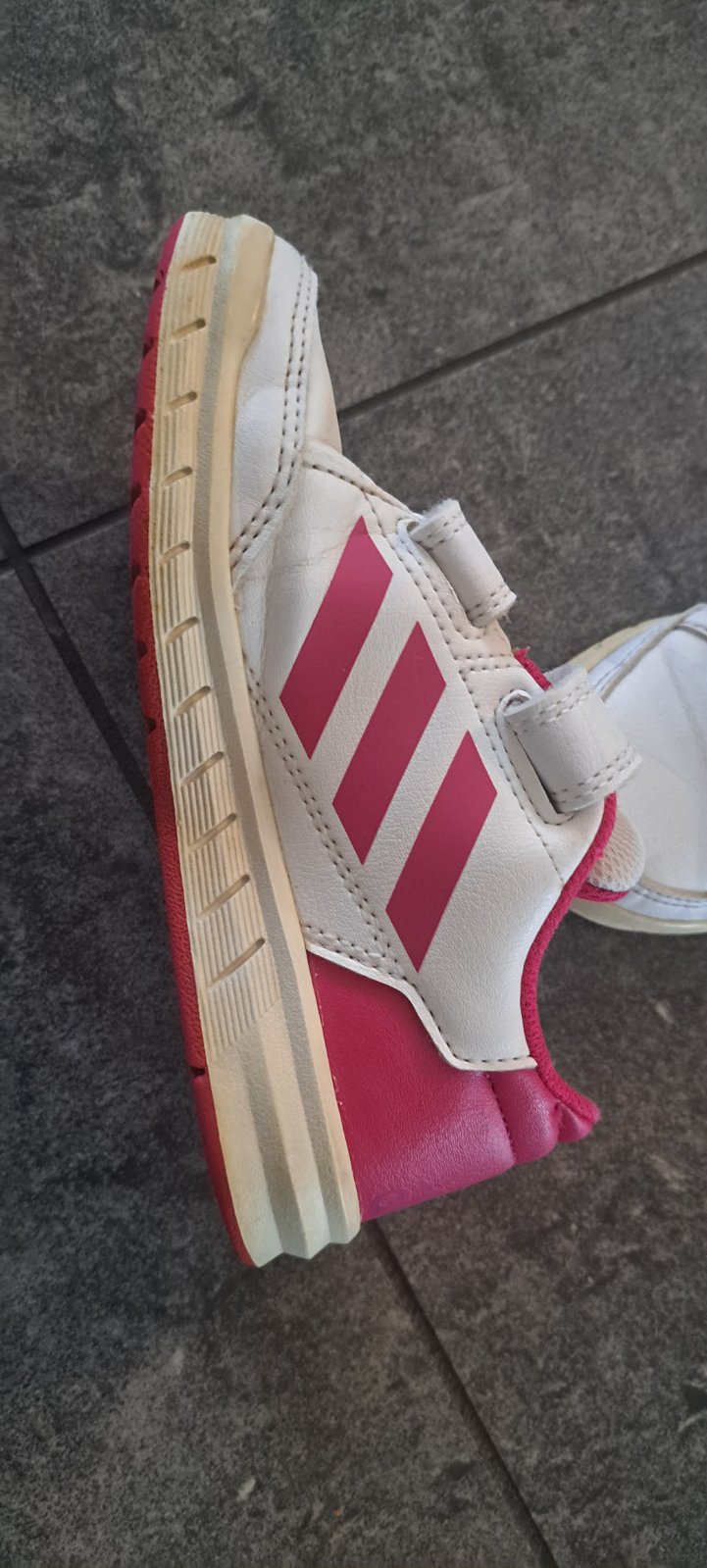 Predám tenisky Adidas Neo Comfort Fit. Celokožené, zvonku biele, vo vnútri ružová. Veľkosť č. 28. Zapínanie na suchý zips. Vpredu a na boku ošúchané, vhodné na donosenie. Kupované v apríli 2016, do...