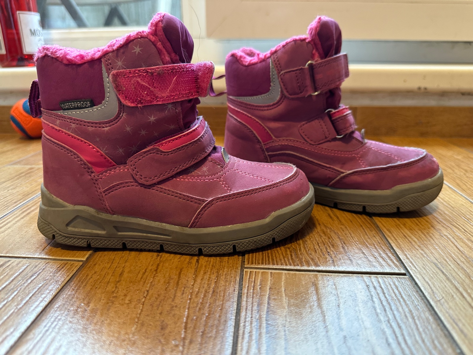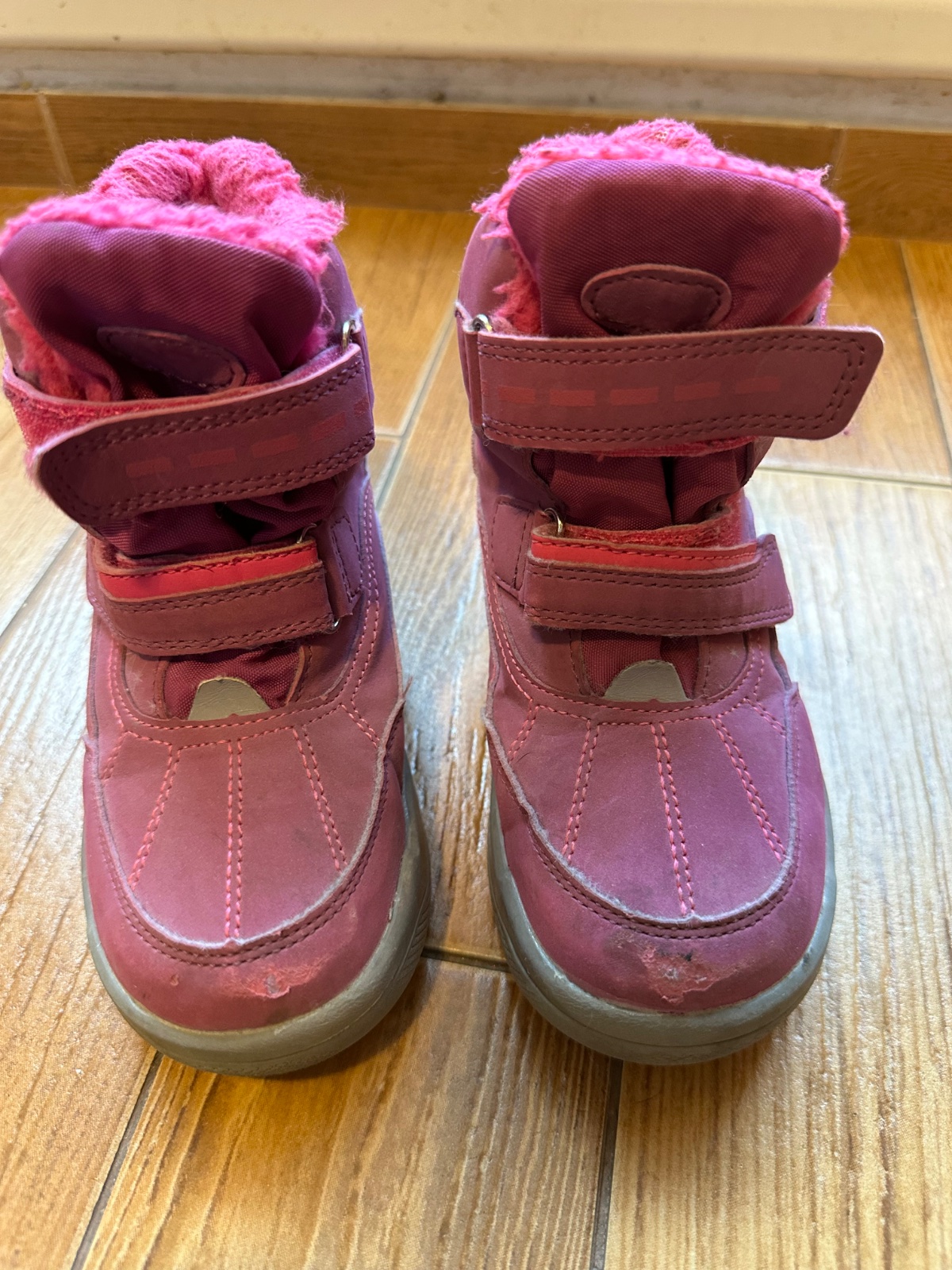 Čižmy majú vpredu ošúchané špičky , inak bez poškodení , bežné známky nosenia .vydrzia aj nepriaznivé počasie.
