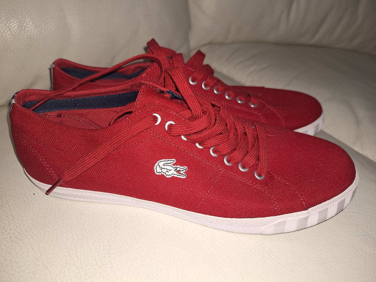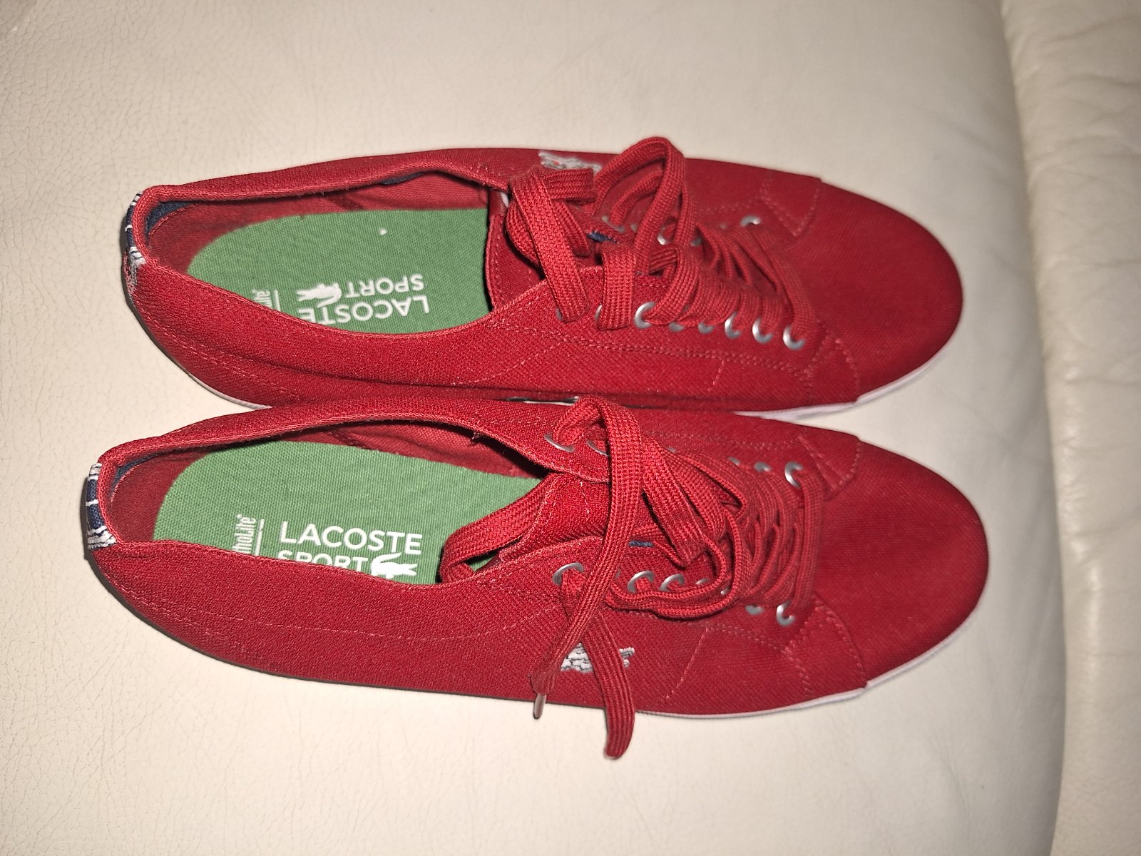 Predám párkrát obuté plátenné tenisky značky Lacoste v perfektnom stave ako nové bez poškodení, vhodné na jar/leto, vo vnútri mäkká vložka. Veľkosť sedí, odporúčam 🙂