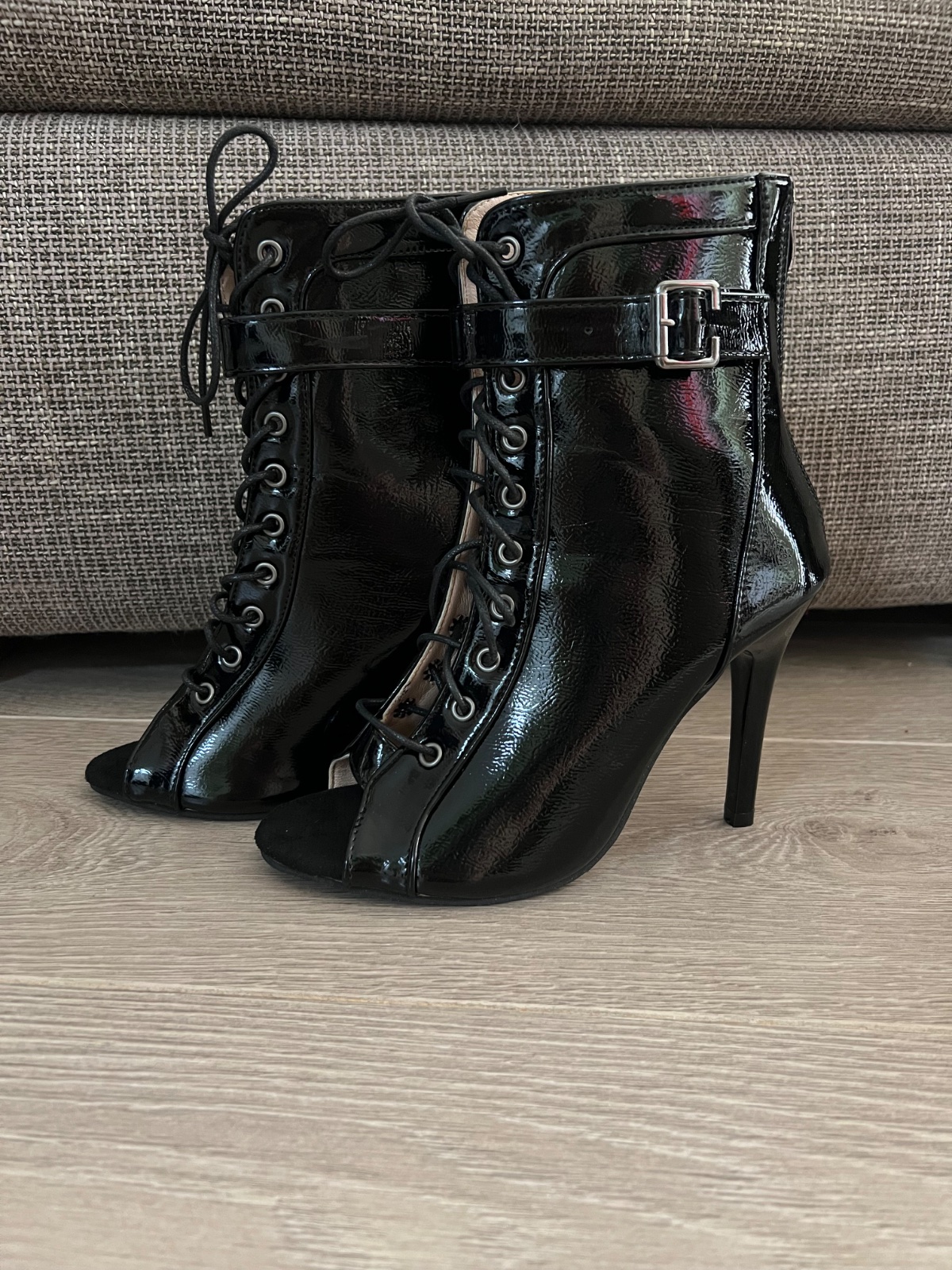 Šnurovanie vpredu, vzadu na zips. Opätok má 10 cm.