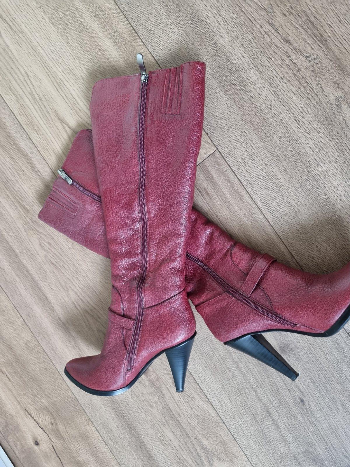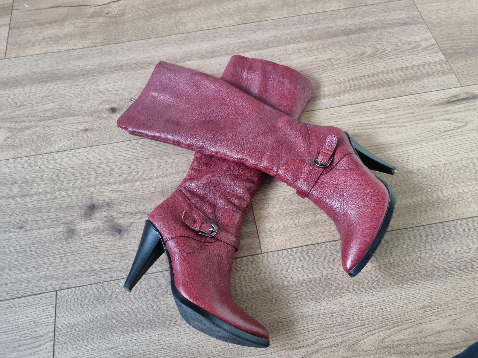 Bordové kožené talianske čižmy 37