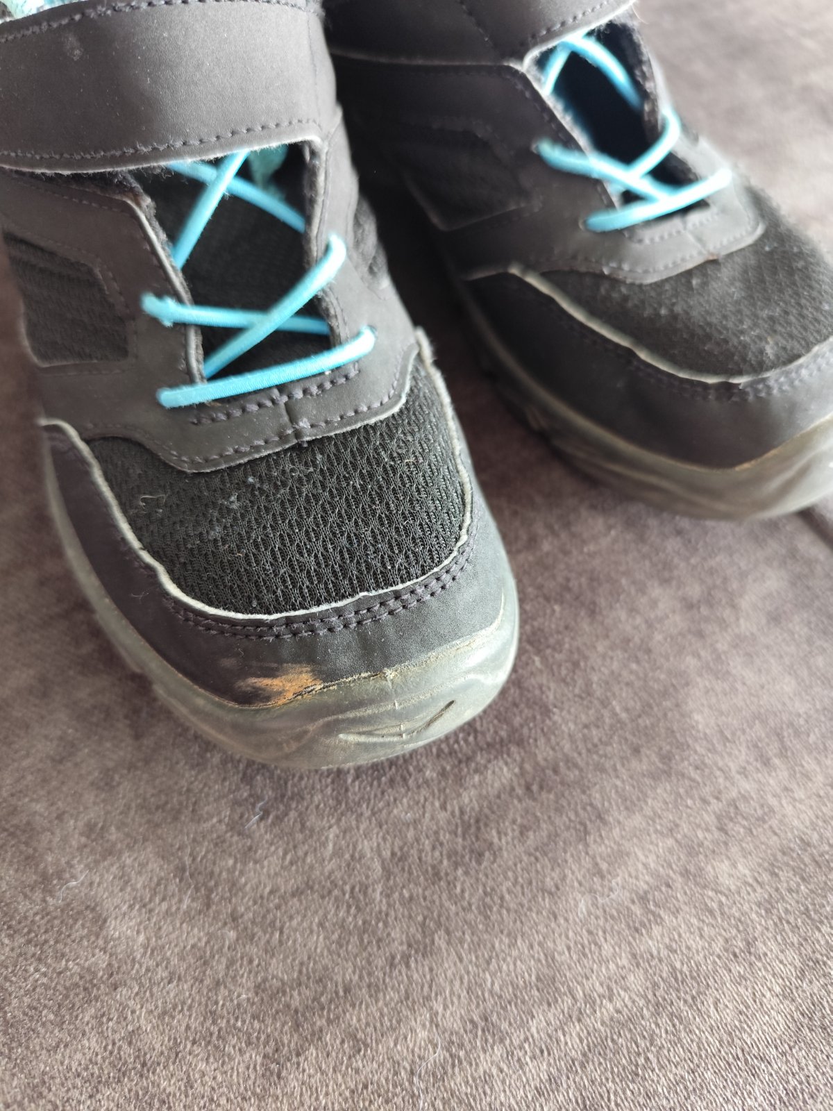 Na donosenie, na ľavej topánke vpredu malá diera.