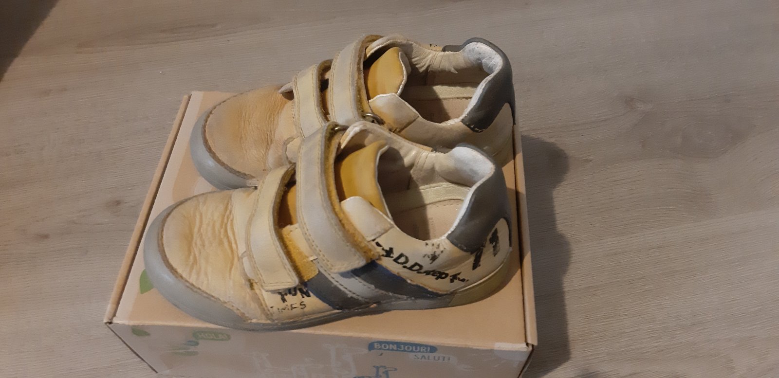 Predám DDstep topanky, blikajuce, ale uz len jeden bliká. Topánky su bezchybné, len farba žltej kože je vyblednutá.