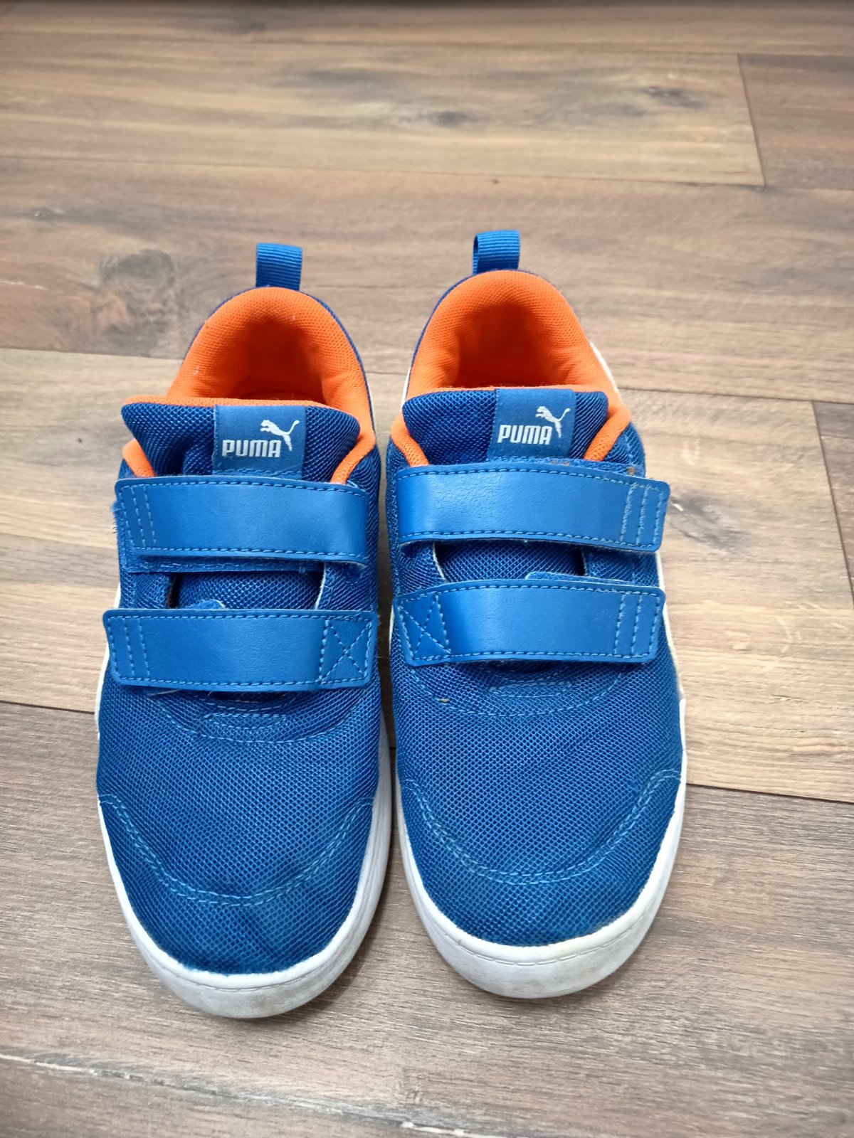 Pekne tenisky na suchý zips,látkové,priedušné,ľahké,ideálne na leto. Nie sú ako nové,sú nosené,opraté,parádu ešte narobia. Dĺžka sa ťažšie meria,vložka sa nedá vybrať,ale namerala som približne 21,5 cm. Kombinácia modrej a oranžovej farby.