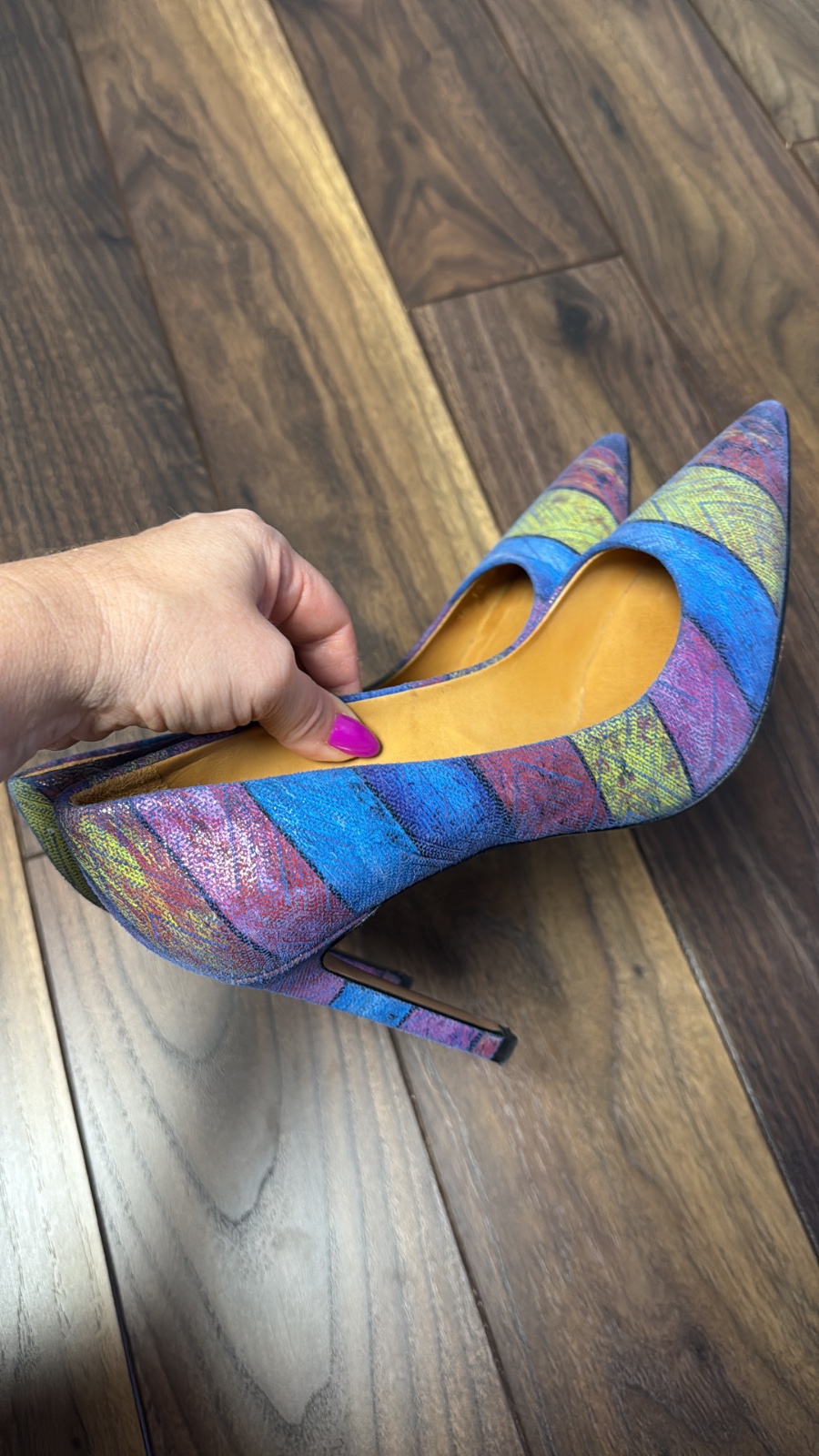Jednoduché lodičky v obľúbenej baby-blue farbe od zn. Vices. Lodičky sú vo výbornom stave, už žiaľ kvôli chrbtici nemôžem takéto krasotinky nosiť. Zišli by sa im už však nové podpätky, inak bez poš...
