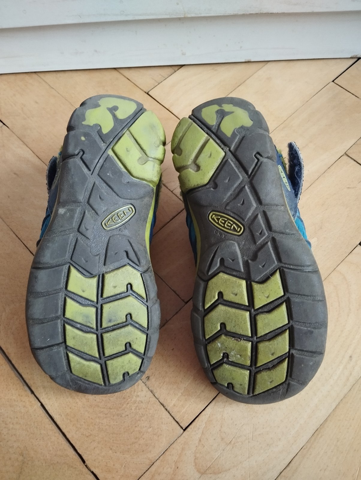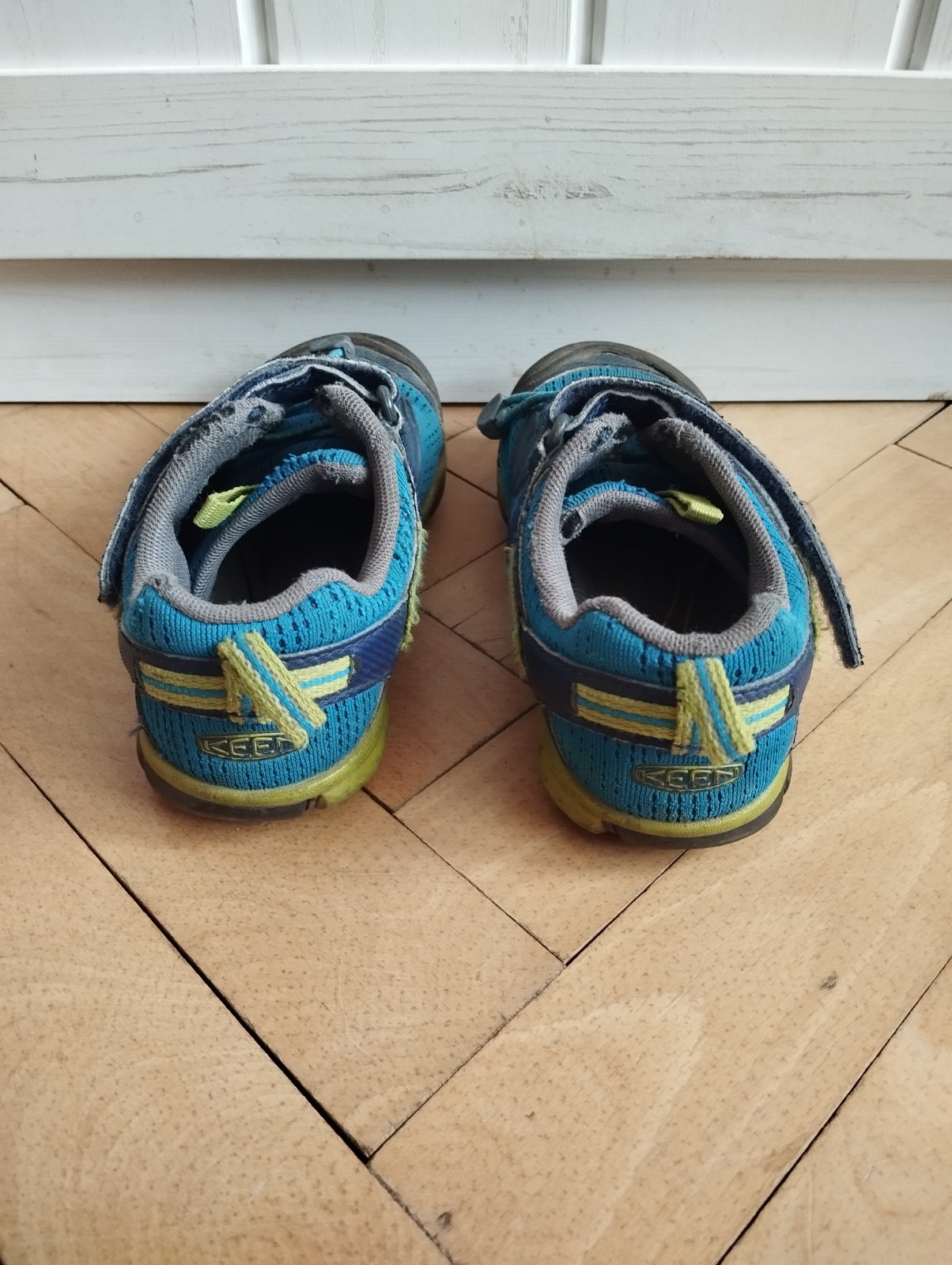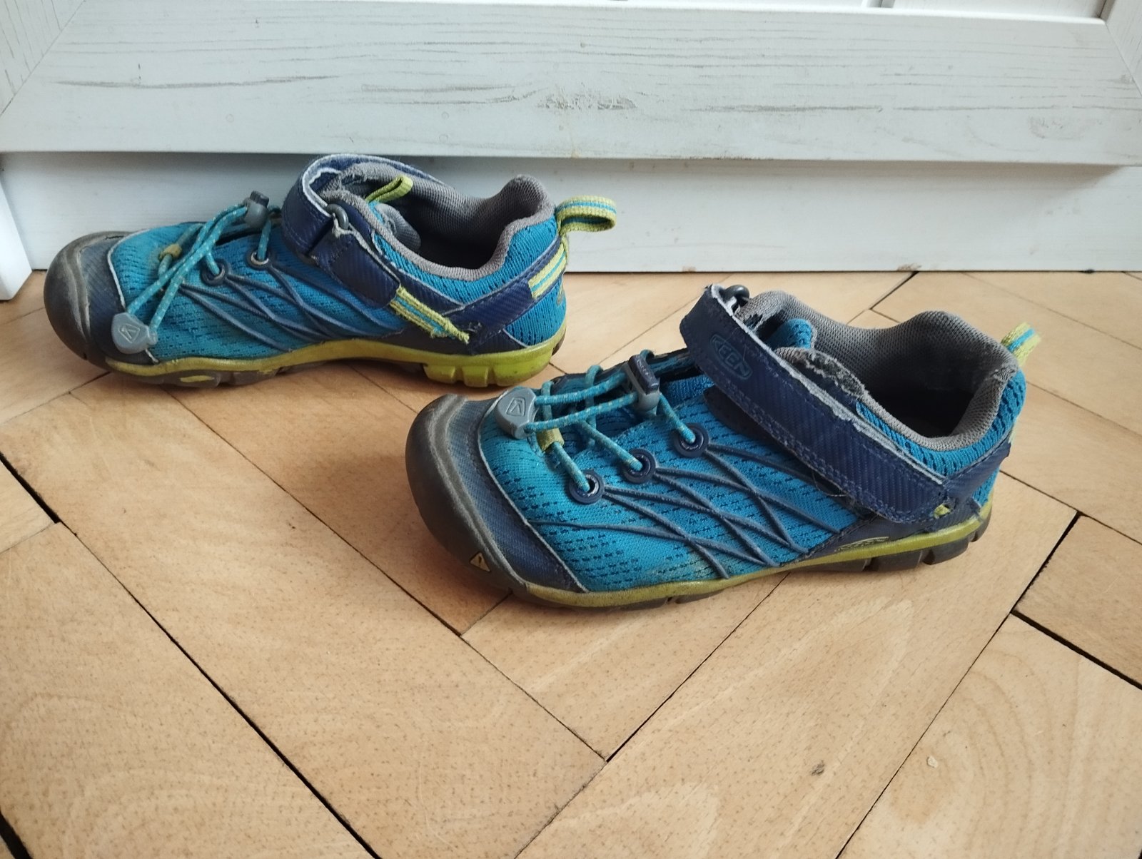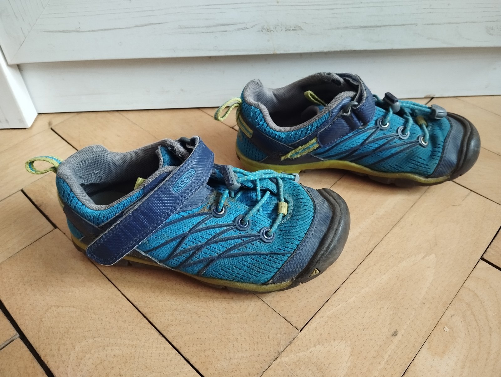 Nosené, bez funkčných poškodení, ale parádu už neurobia. Na dvor/do lesa/k babke stále super 😊 Lepáky držia dobre, inak stav ako na foto (estetické poškodenia).