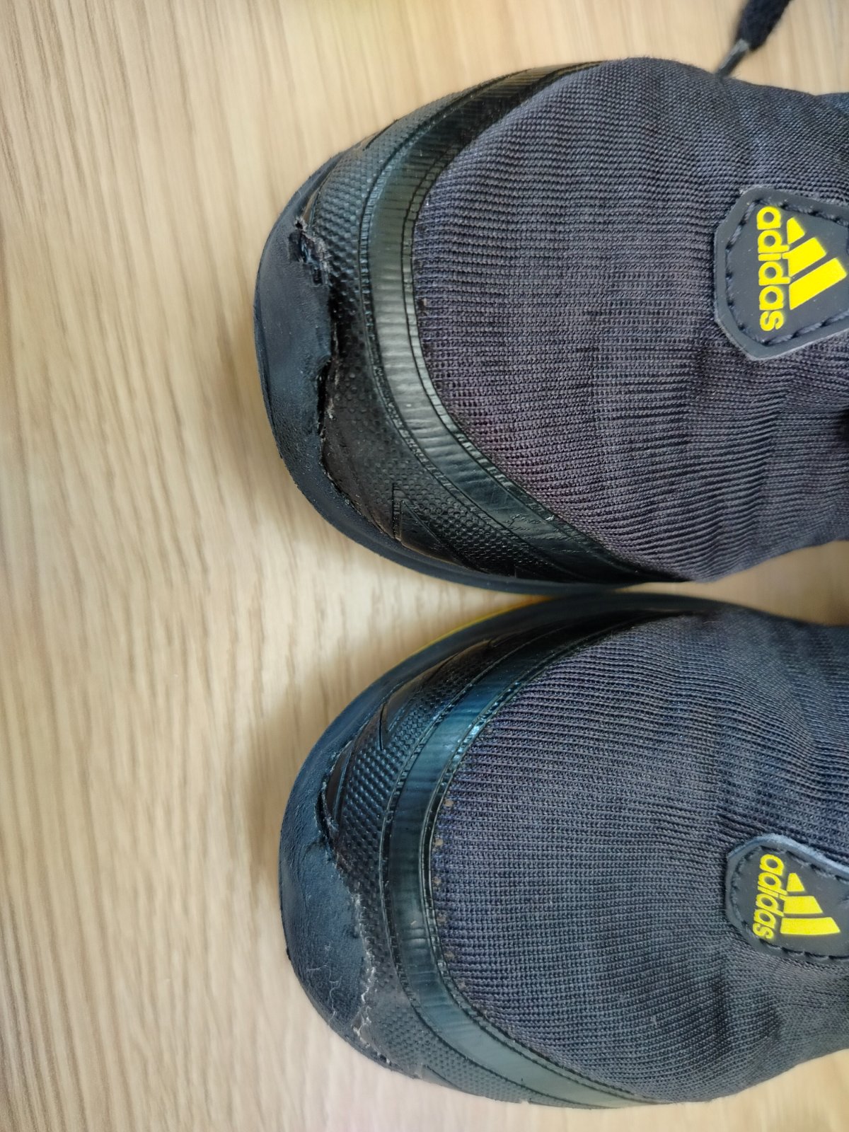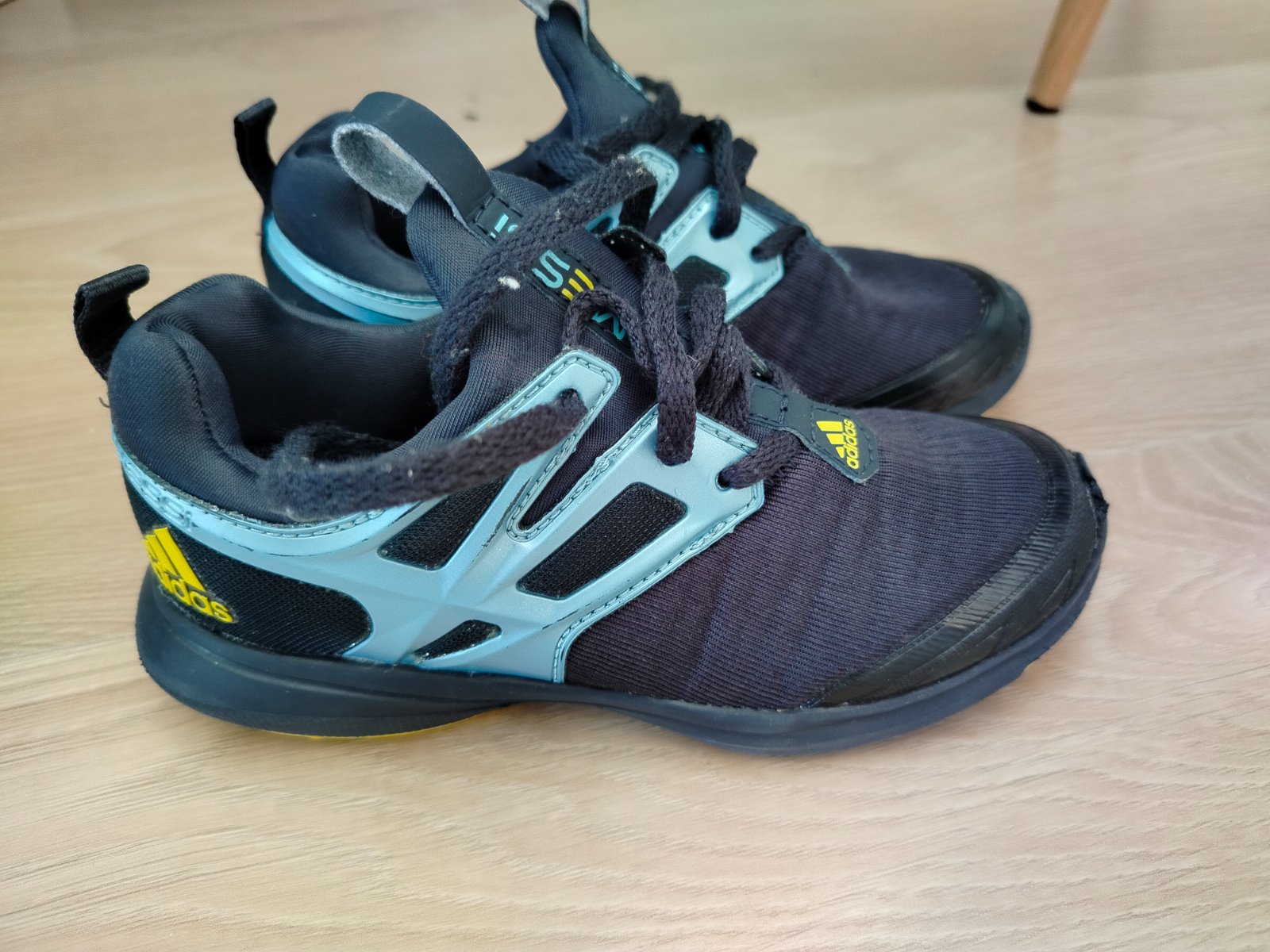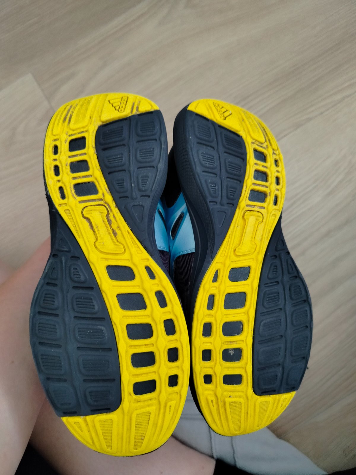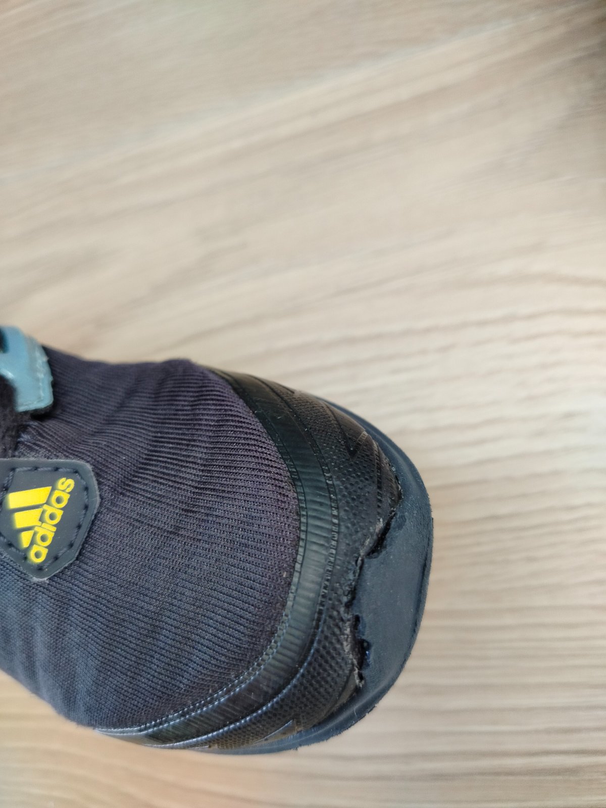 Messi tenisky, mäkkučké, ľahučké, chybička-vpredu odratá guma na špičkách. Pôvodná cena tenisiek 45€, len táto chybička na špičkách,inak sú v top stave,nosené málo ,farba úplne čierna (na foto ide do fialova). Podrážka mäkká, plne ohybná.velkost píšu 29,ale reálne sú to podľa mňa menšie,keď porovnám s inými synovými adidaskami,čo nosil. Podľa mňa tak 27-28. Vnútorná dĺžka 18,5cm plus skôr na normálnu až tenšiu nohu, nevhodne na širokú.