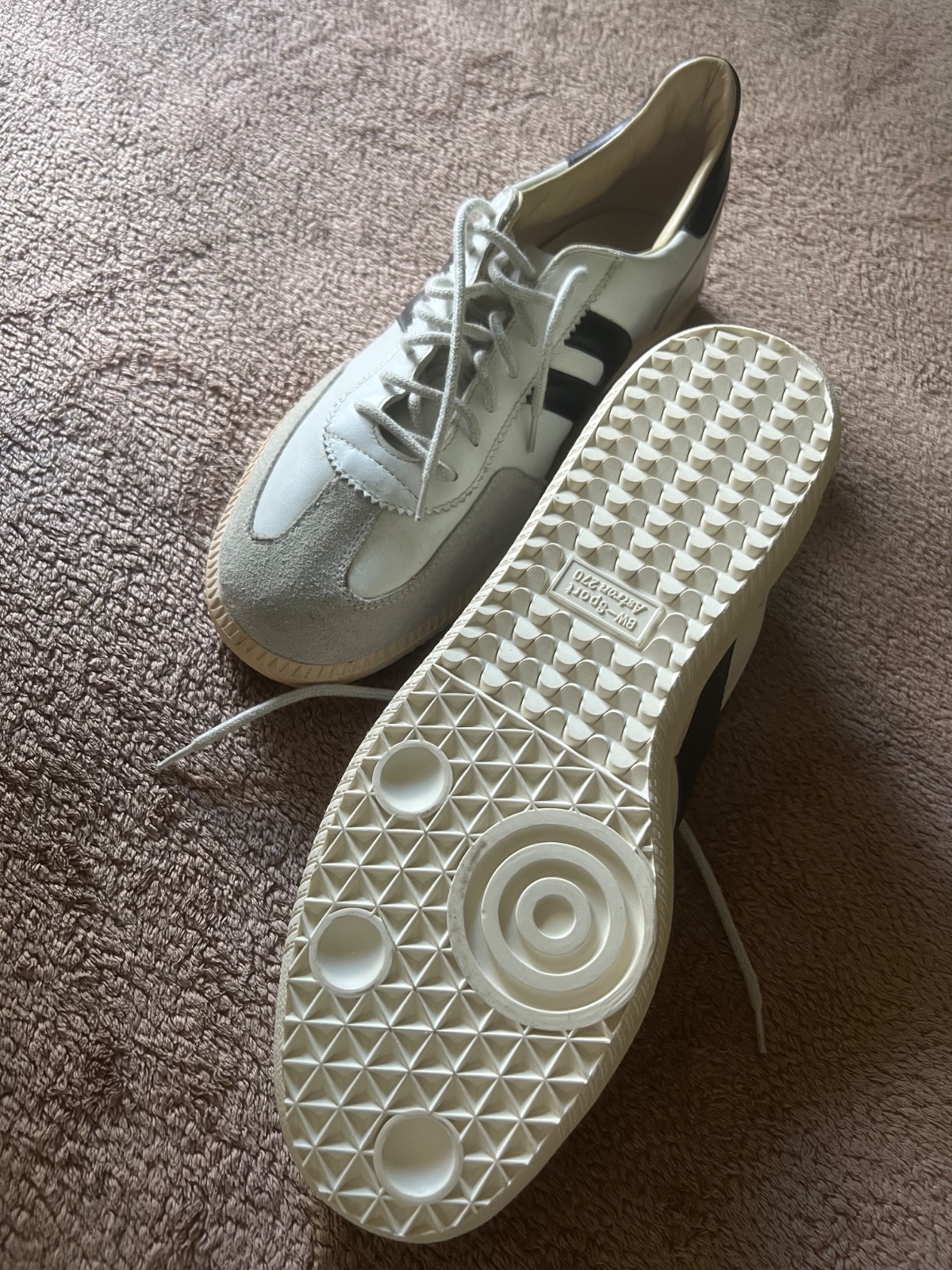 Kupované tu, 1x obuté lebo nesadla veľkosť. VN.dlzka je 28cm. Keď ich očistíme tak budú vyzerať super. Poškodenie je nafotene, na boku sa odlepuju asi 1cm.