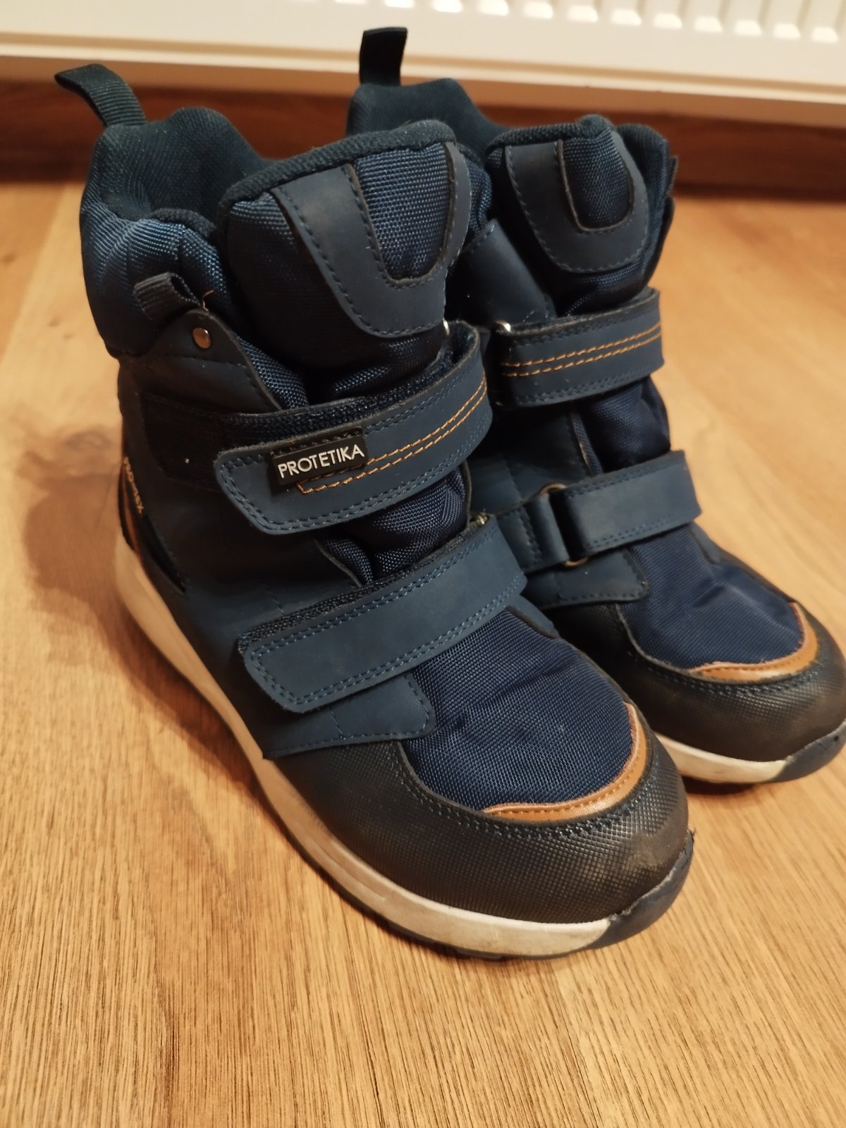 Chlapcenske nepremokave topanky Protetika, model Natan navy, velkost 33, membrana Protex, nepremoknu. Lahko sa obuvaju, su teple zateplena ortopedicka vlozka. Po jednom dietati, top stav.