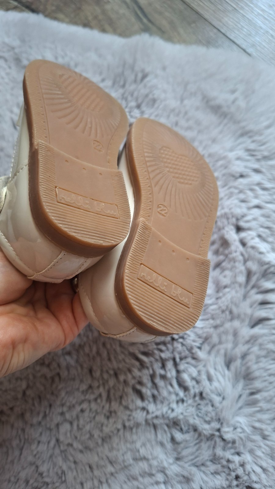 Dvojo baleríniek veľ. 22, obutých len na fotení. Maslové F&F so zlatými kvietkami, VD 14,5 cm, 10 €. Predané Biele s aplikáciou kvietku, iná značka, VD 15 cm. 8 €