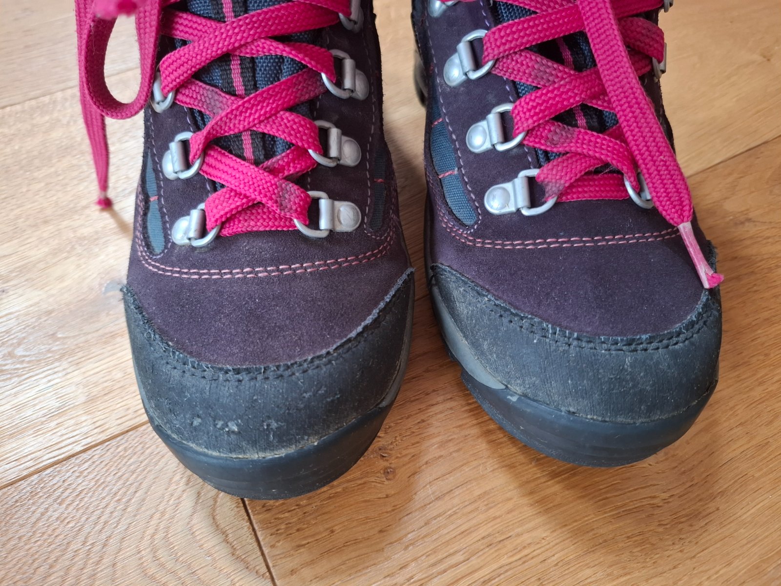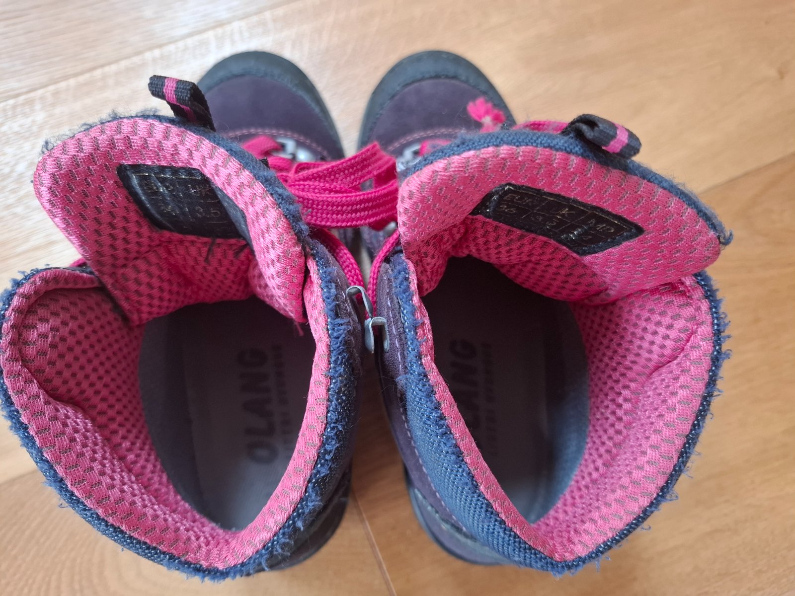Kvalitné turistické topánky,vibram podrážka,pekný noseny stav,vyčistené,vložky vyumyvane,dcéra ich rada nosila. Výrobca udáva VD 23,5 cm, ja som namerala nieco cez 22,5 cm na vytiahnutej vlozke.
