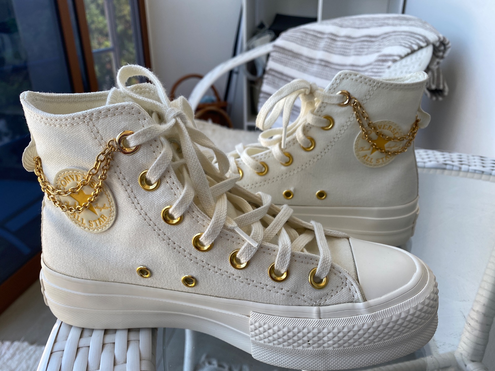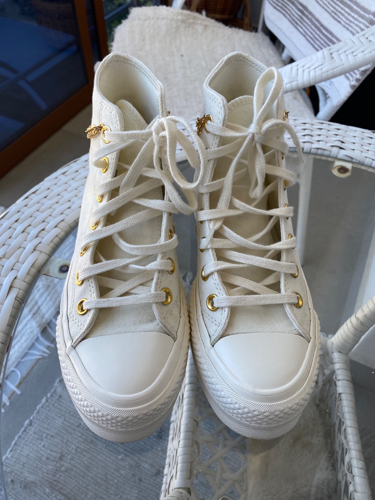 Predám krásne conversy raz obuté , veľmi pekne veľkosť 36 kombinácia biela zo zlatou