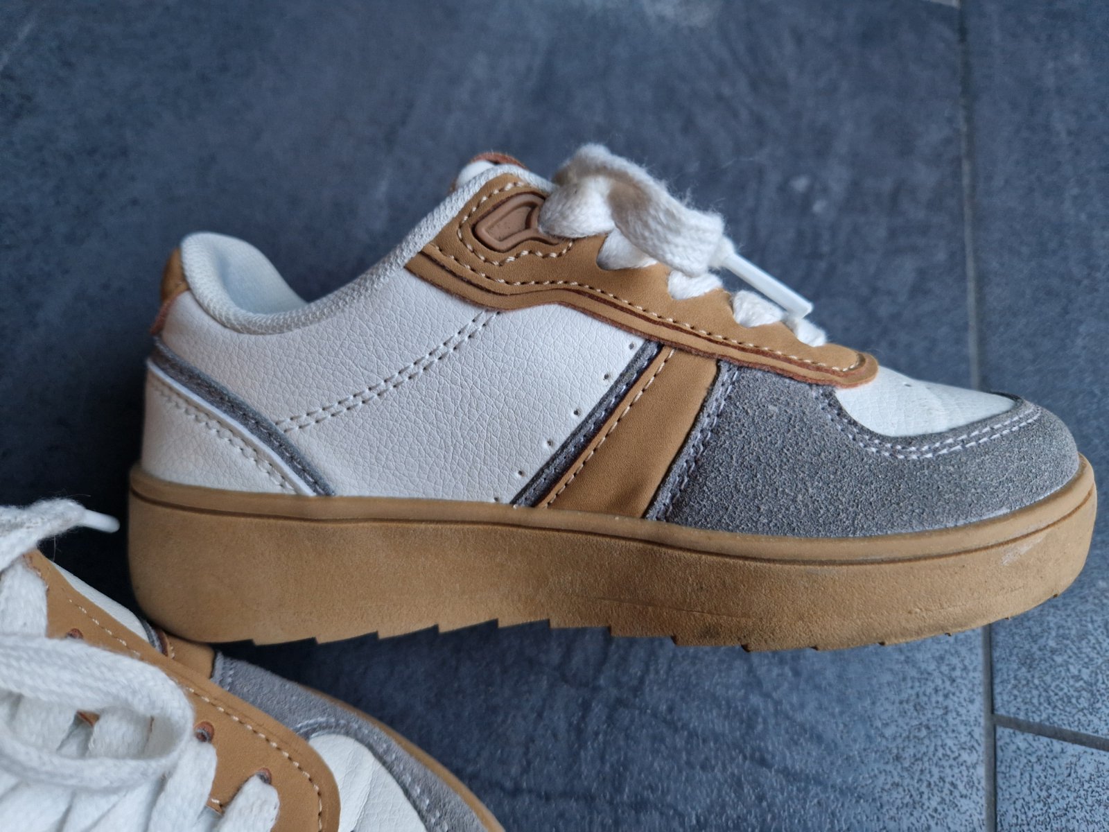 Pár krát obuté. Veľmi pekná farebná kombinácia. Nie na veľmi širokú nôžku. Vn.dĺžka 19cm