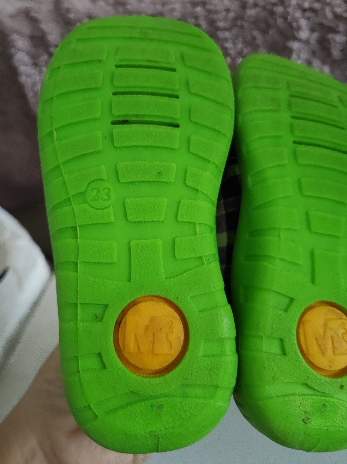 Nosené plátenky alebo papučky ako nové. Bez poškodenia, neokopané, nevyblednuté, proste v super stave. Nosili sme iba na doma (viac vyzuté ako obuté :-)) a aj to iba krátko, lebo nám rýchlo narástl...