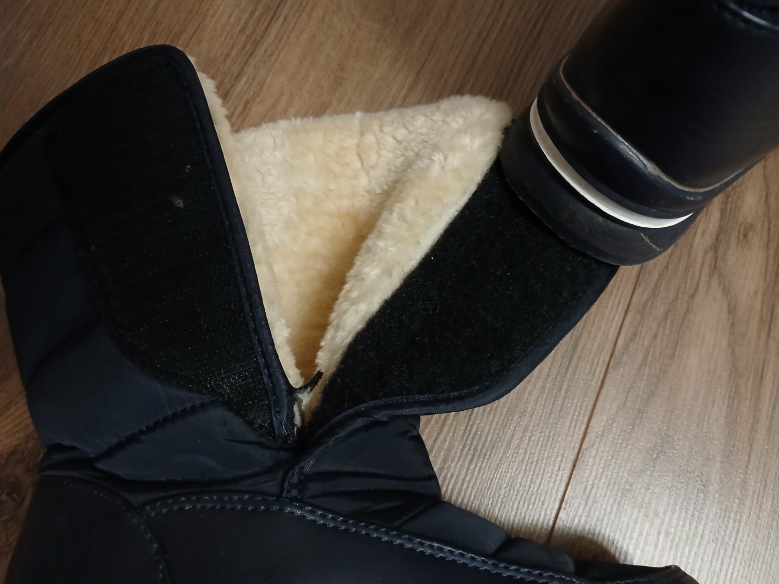 Vnútro hrubá hrejiva kozusina, mierne mini odierky, ináč vo výbornom stave, tuto zimu už nenosené, narástla nozka. Vnútro 19,9-20cm