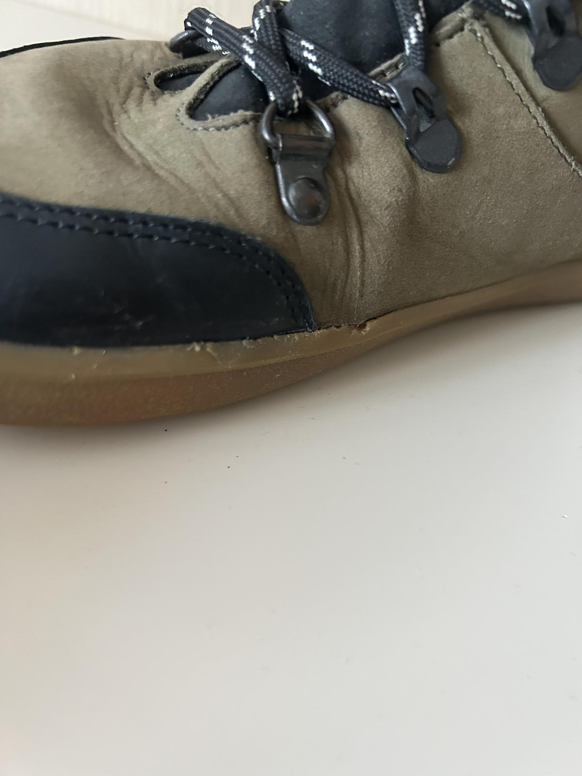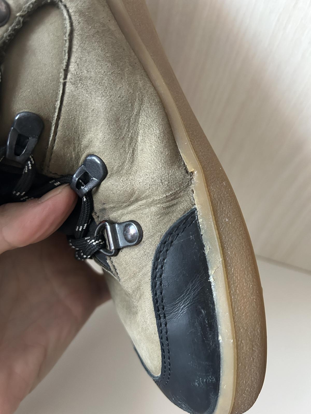 Pouzivane synem jednu zimu, mirne suchnute spicky (moc ani nevidno), ve vnitrni strane ponicena podrazka (guma) a na vnitrni strane leve boty seda smouha. Podrazky zespoda i vazani 100% ok.