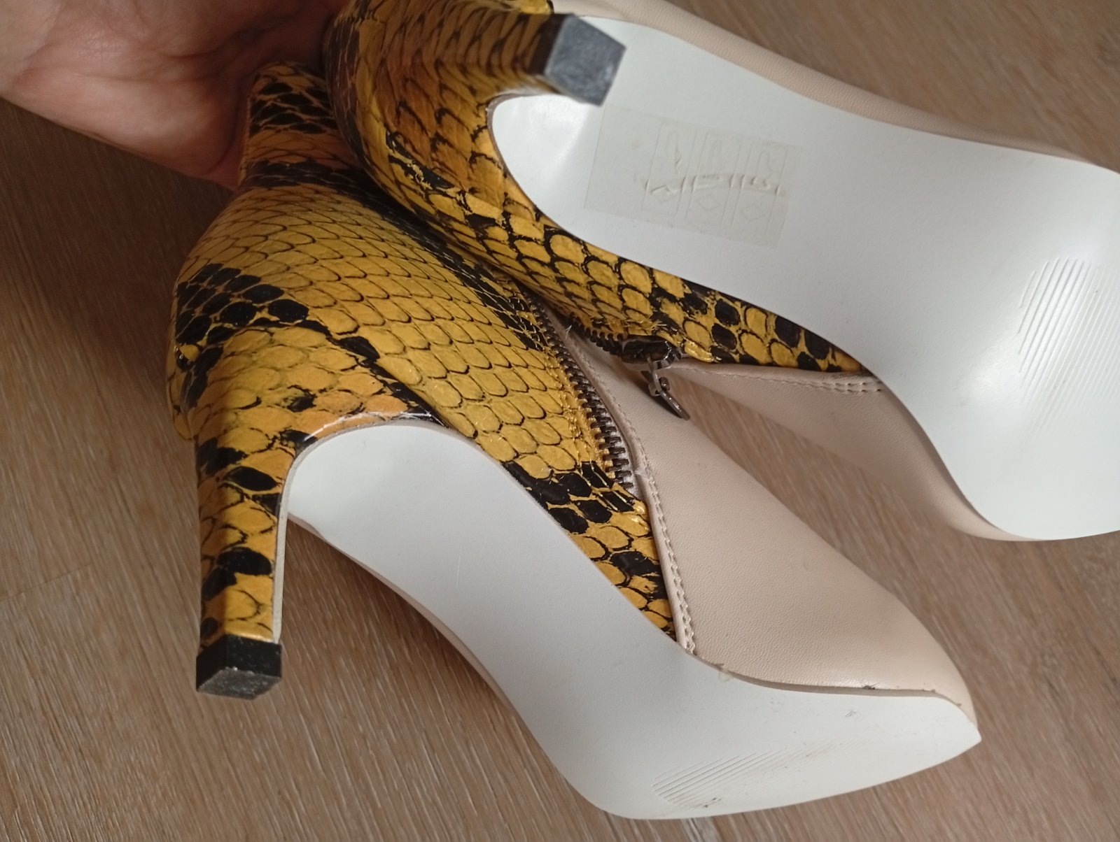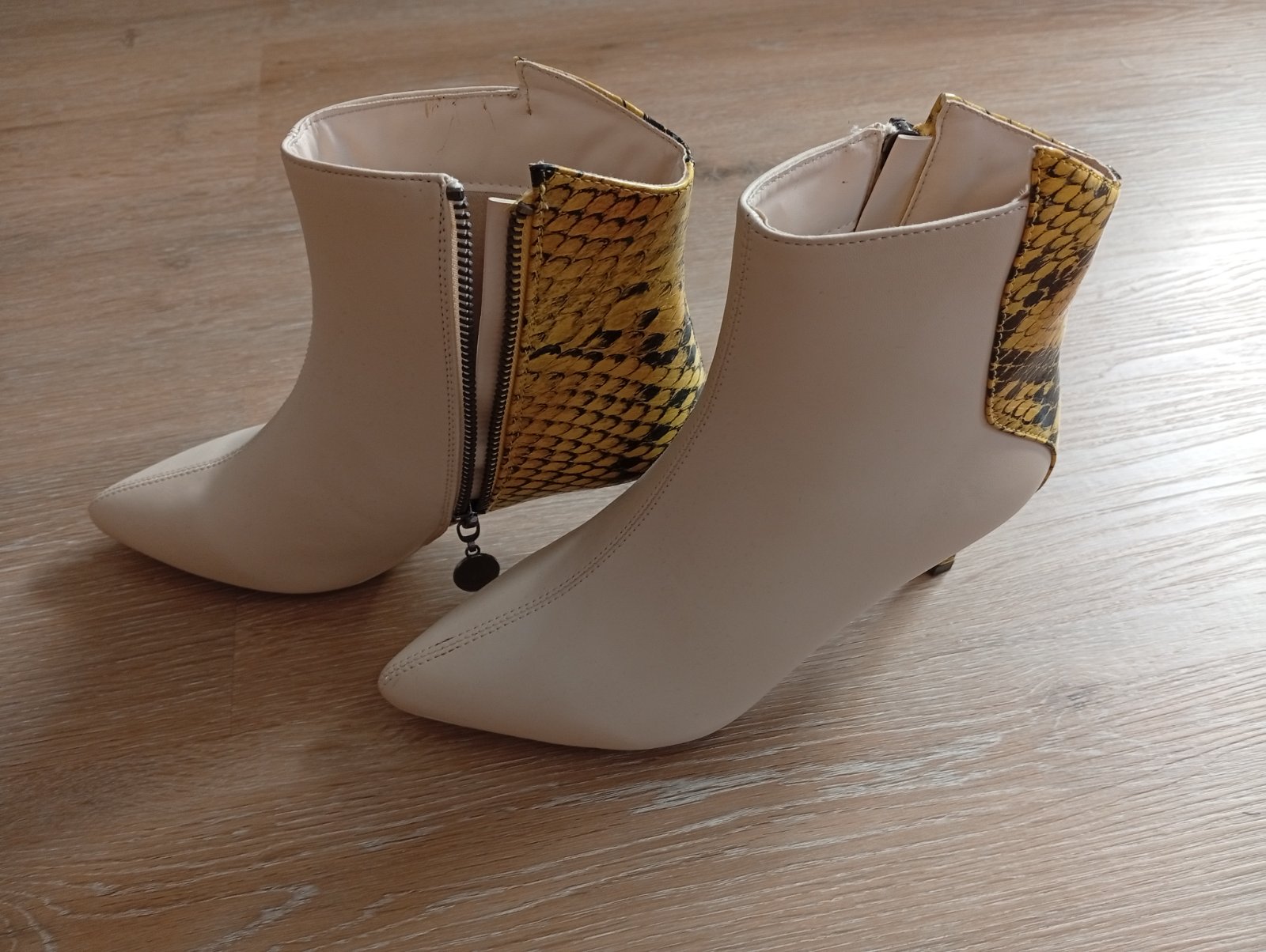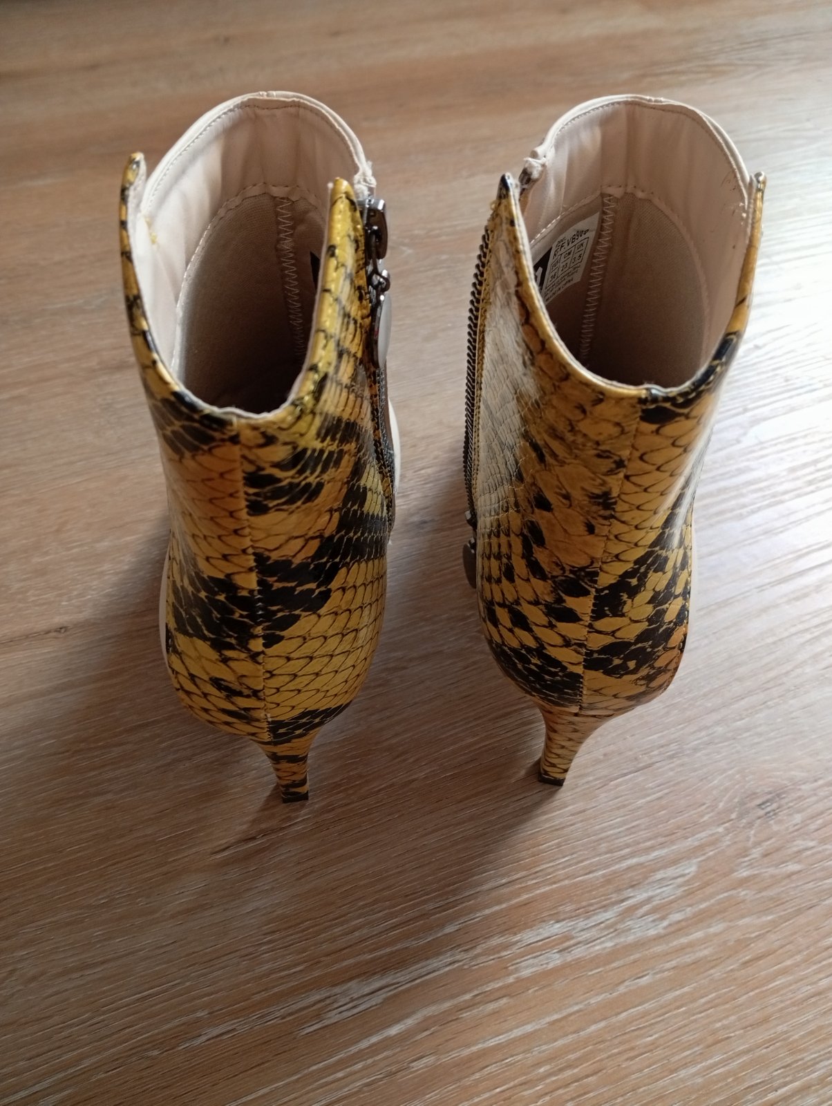 Kupovane pred Vianocami, raz obuté. Bohužiaľ nesadla mi veľkosť. Celokožené, trendová horčicovú farba a sú veľmi pohodlne. Sú v záruke, doklad o kúpe a originál krabica. Výška podpätkov 10 cm. Cena...