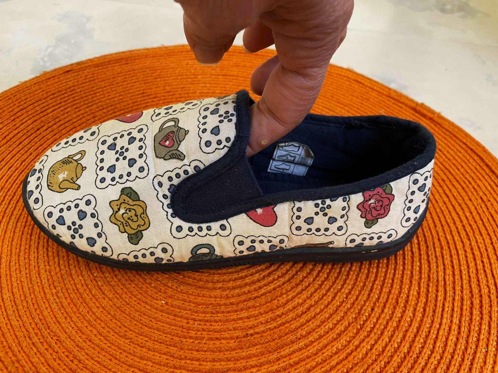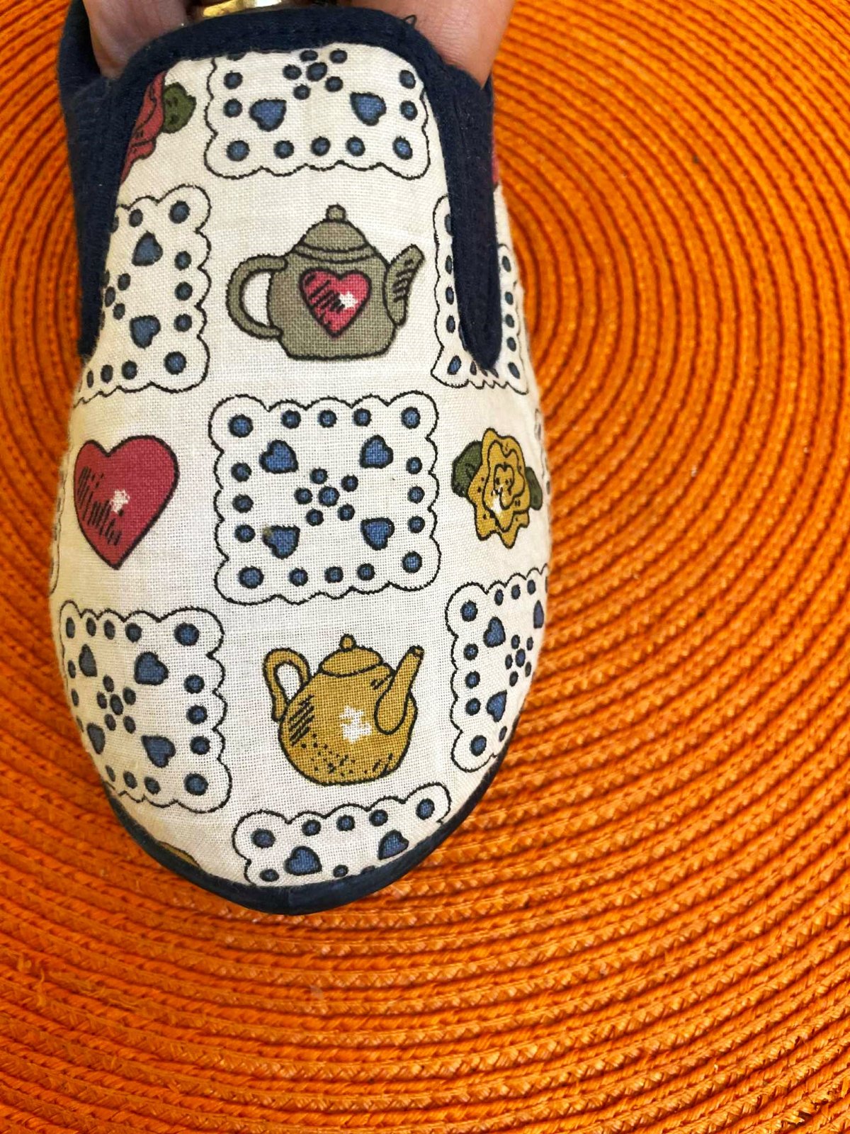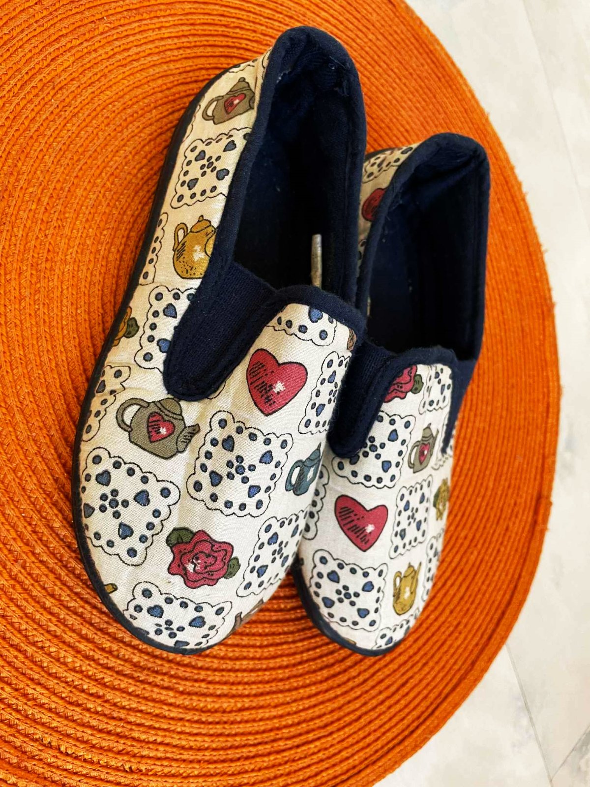 pohodlné patchworkovépapučky,duplované,protišmykové,aj na širšiu nohu,po bokoch gumičky,ktoré pekne nohu držia,zaujímavý vzor, vn. dlžka = 18 - 18,2 cm,farba lomená biela s potlačou motívov
