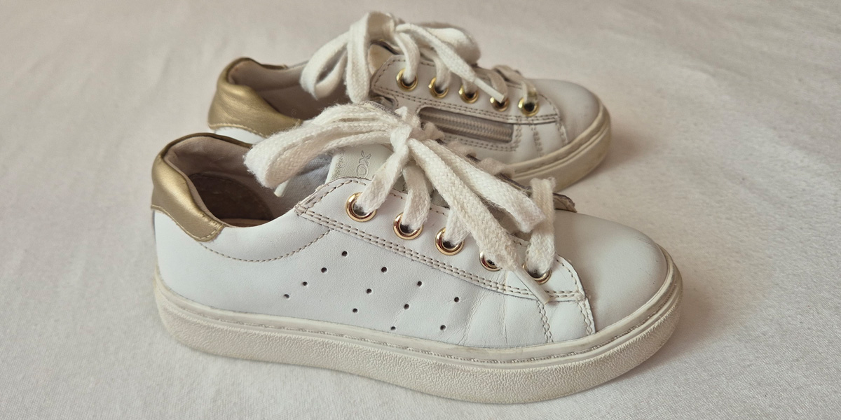 Predám pekné dievčenské sneakersy Geox, veľkosť 28, vo veľmi dobrom stave, farba: biela.