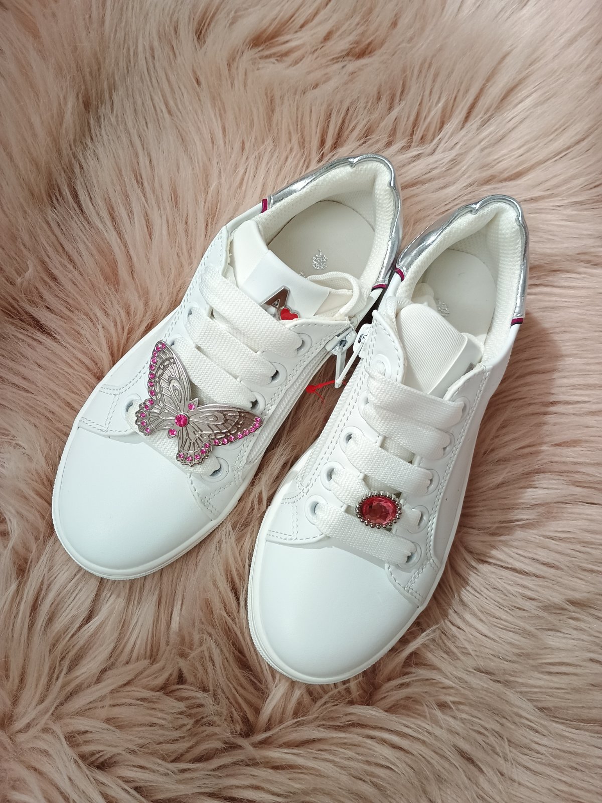 Biele tenisky pre dievčatá v zaujímavom a jednoduchom dizajne od značky ASSO, ktoré vaše ratolesti ocenia hlavne kvôli pohodlnosti, všestrannosti a modernému spracovaniu. Tenisky majú zvršok z eko kože, so striebornými detailmi a výrazným motýľom na jednej teniske. Tenisky majú klasické šnúrovanie, zvýšenú podrážku s dobrou priľnavosťou k povrchom rôznych druhov. Ideálne na každodenné nosenie.