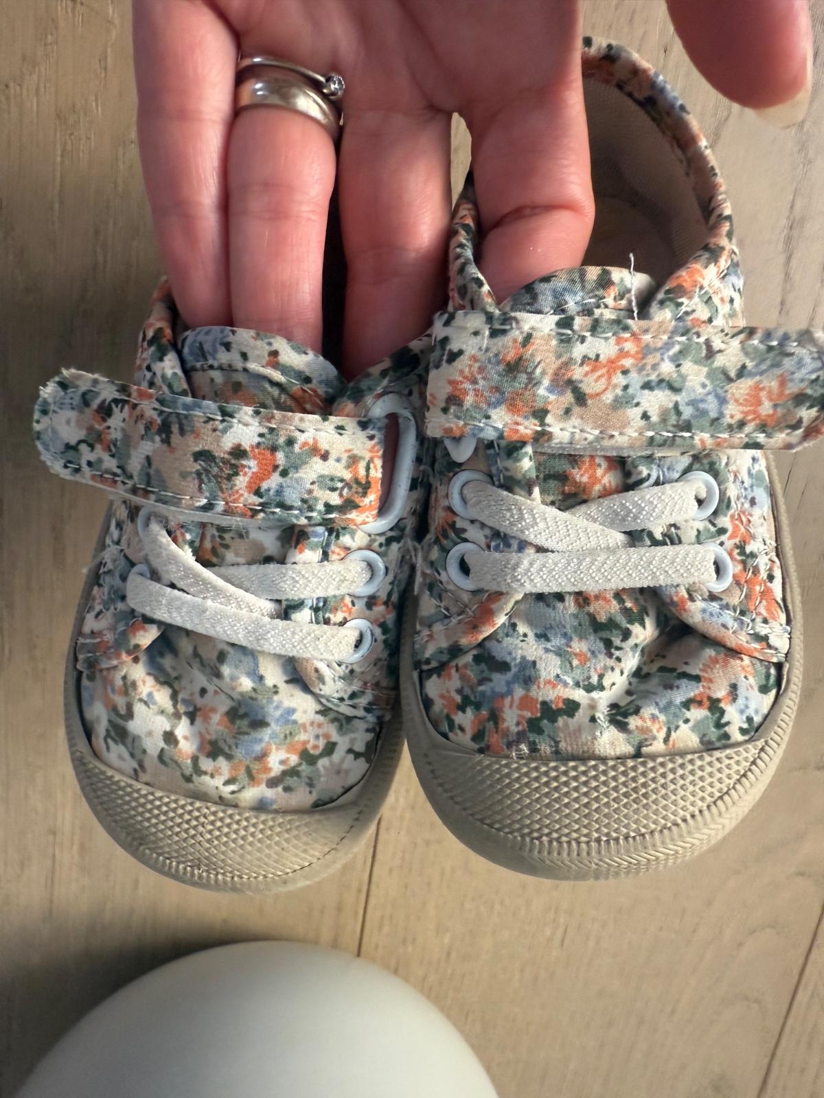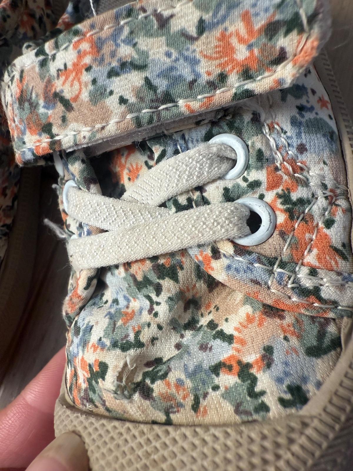 Krásne látkové tenisky plne ohybné vo všetkých smeroch, dcerkyne obľúbené, super stav, iba mala dierka na jednej topánke -nafotené a vo vzore sa stráca, pri nosení nevidno.