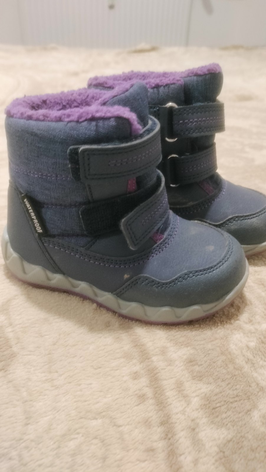 Predam velmi dobre cizmicky.bola som s nimi spokojna. Material je nepremokavy vnutro zateplene.dcerka ich velmi rada nosila. Material kvalitny, vodeodolny,takze nepremokli aj ked bola dcera v snehu.