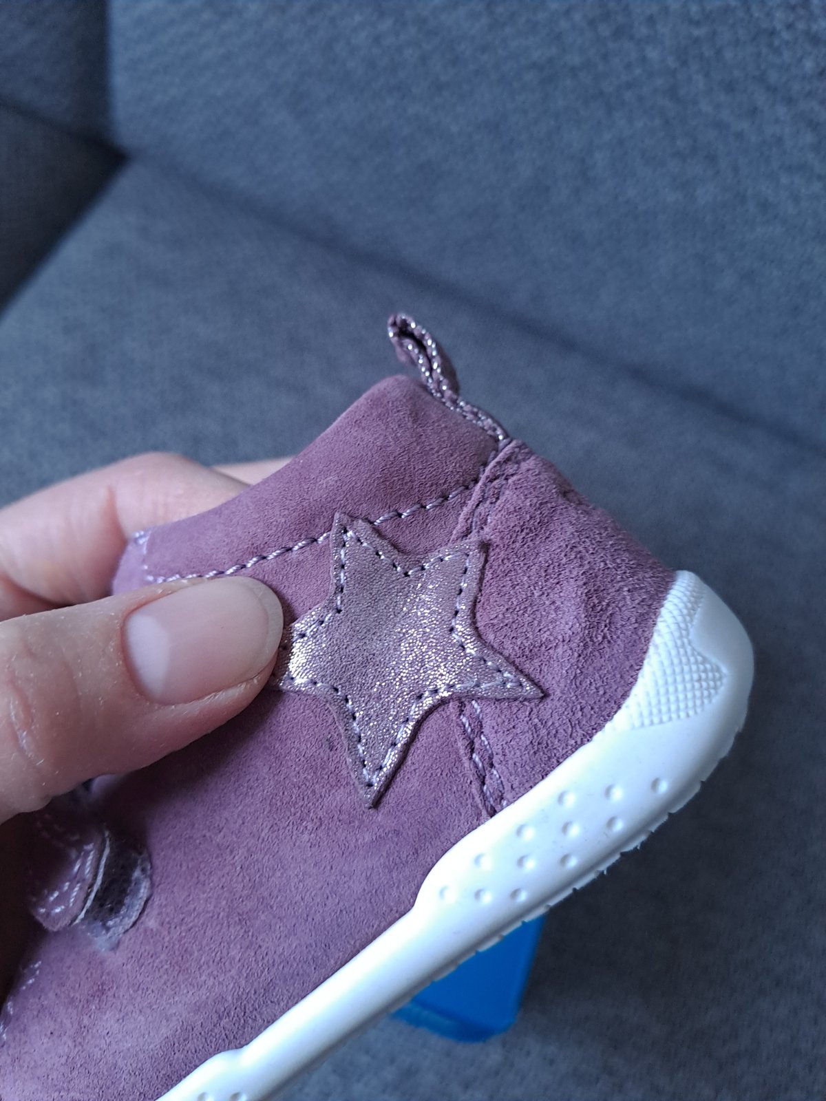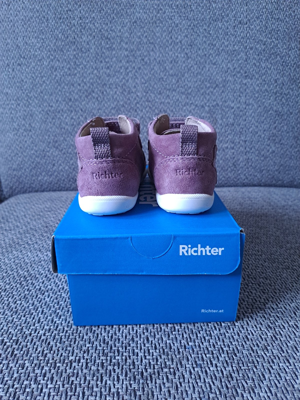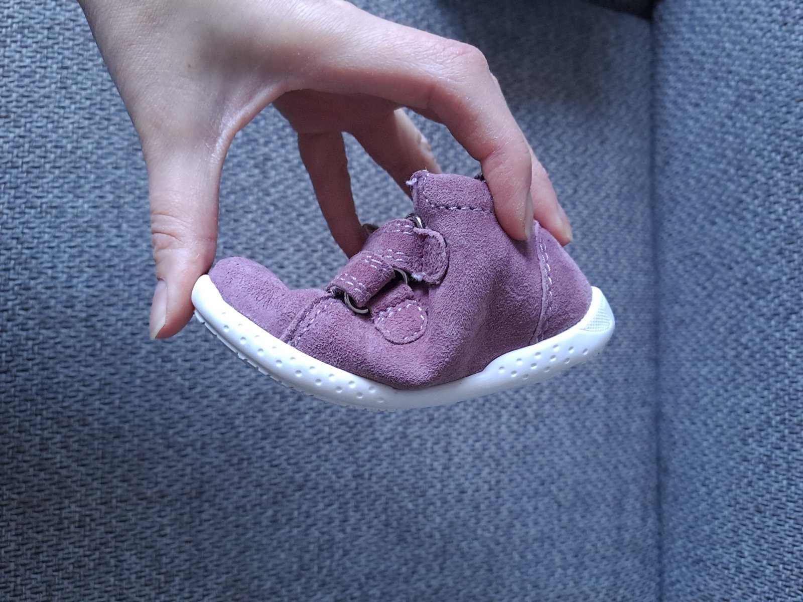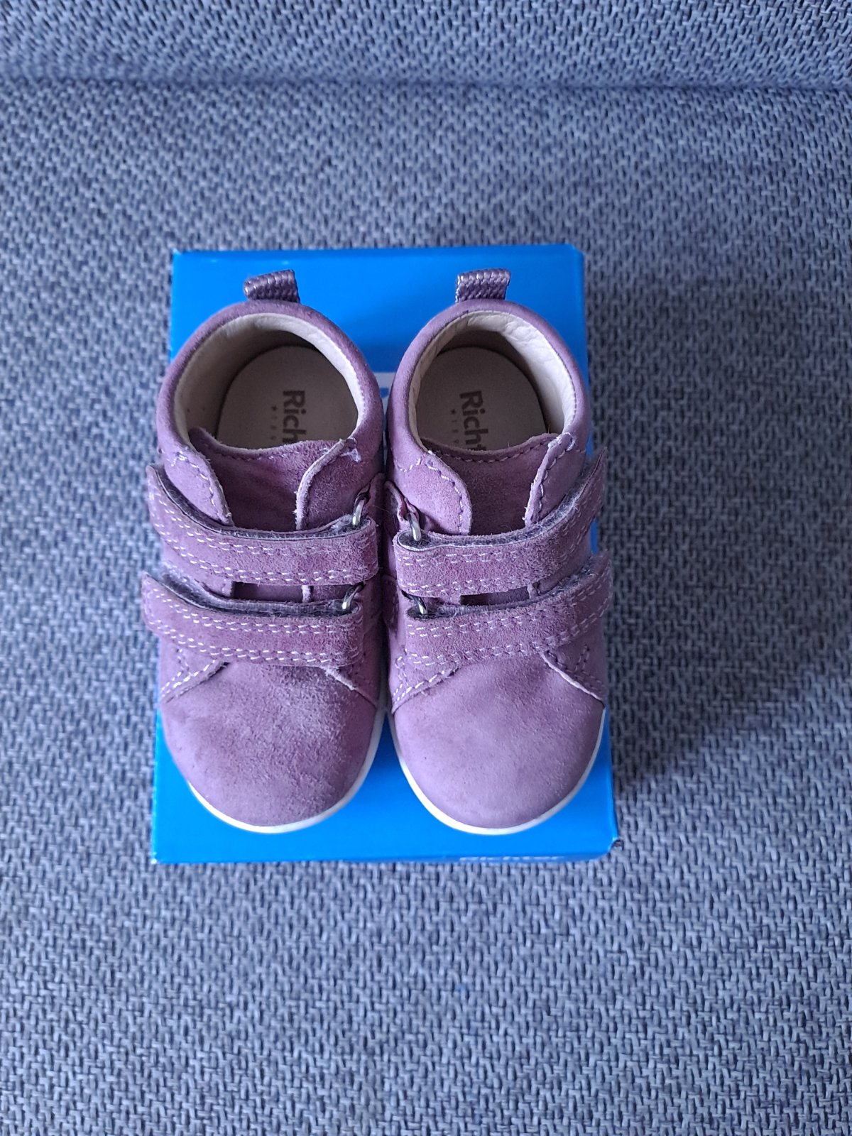 Nadherne mininalne nosene topanocky (len v kociku a parkrat v nich bolo prejdene), ohybna podrazka, material velur, ciastocne vodeodolne, naimpregrnovane, vhodne na prve kroky. Stielka vyberatelna, rozmery vid foto. Zapinanie na suchy zips. Top stav. Obuv na kazdodenne nosenie.