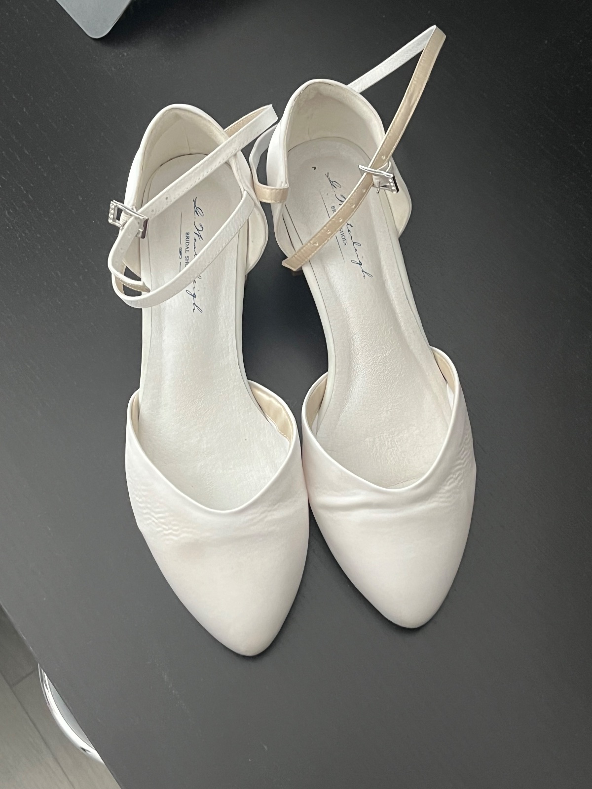 Velmi pohodlne svadobne topanky, vycistene, obute raz :)